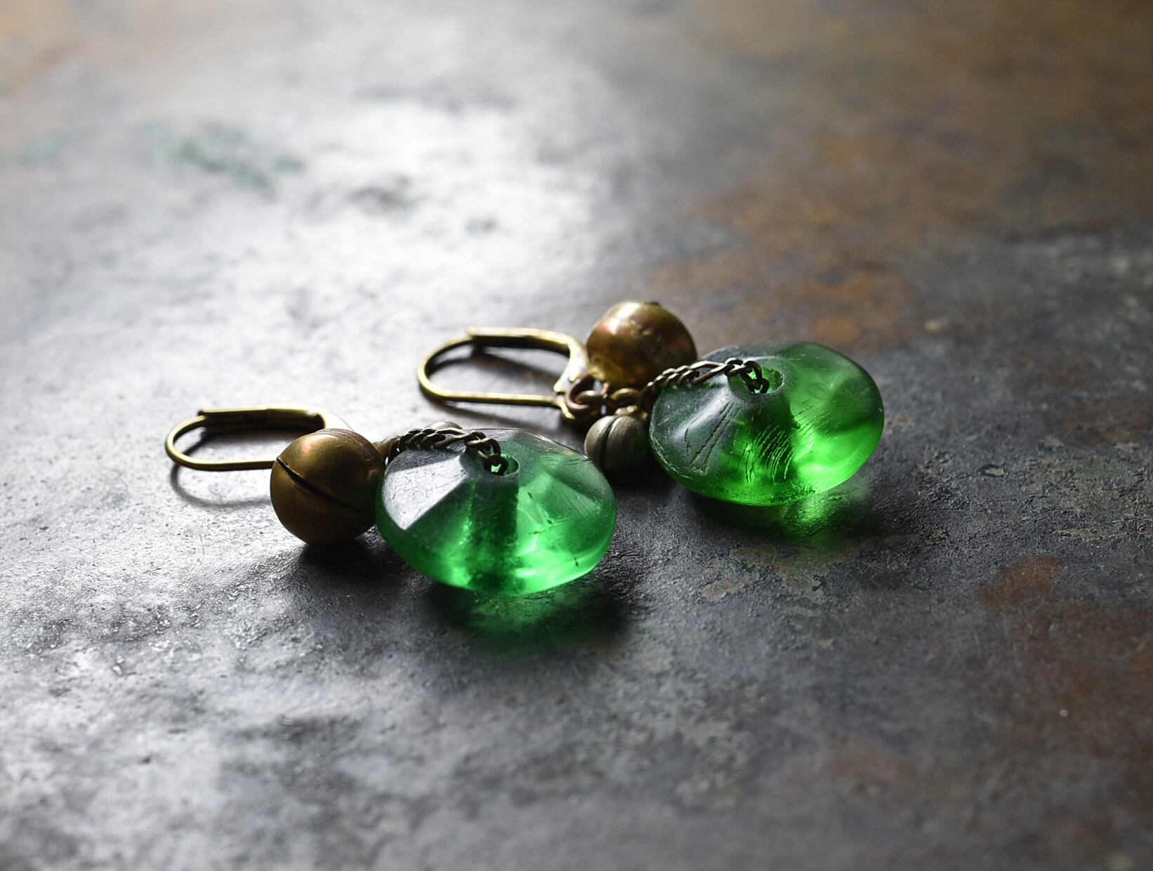 独特なセミクリアグリーンのビーズは、アンティークのボヘミアビーズです。(20世紀初頭)ウランガラスではありません。