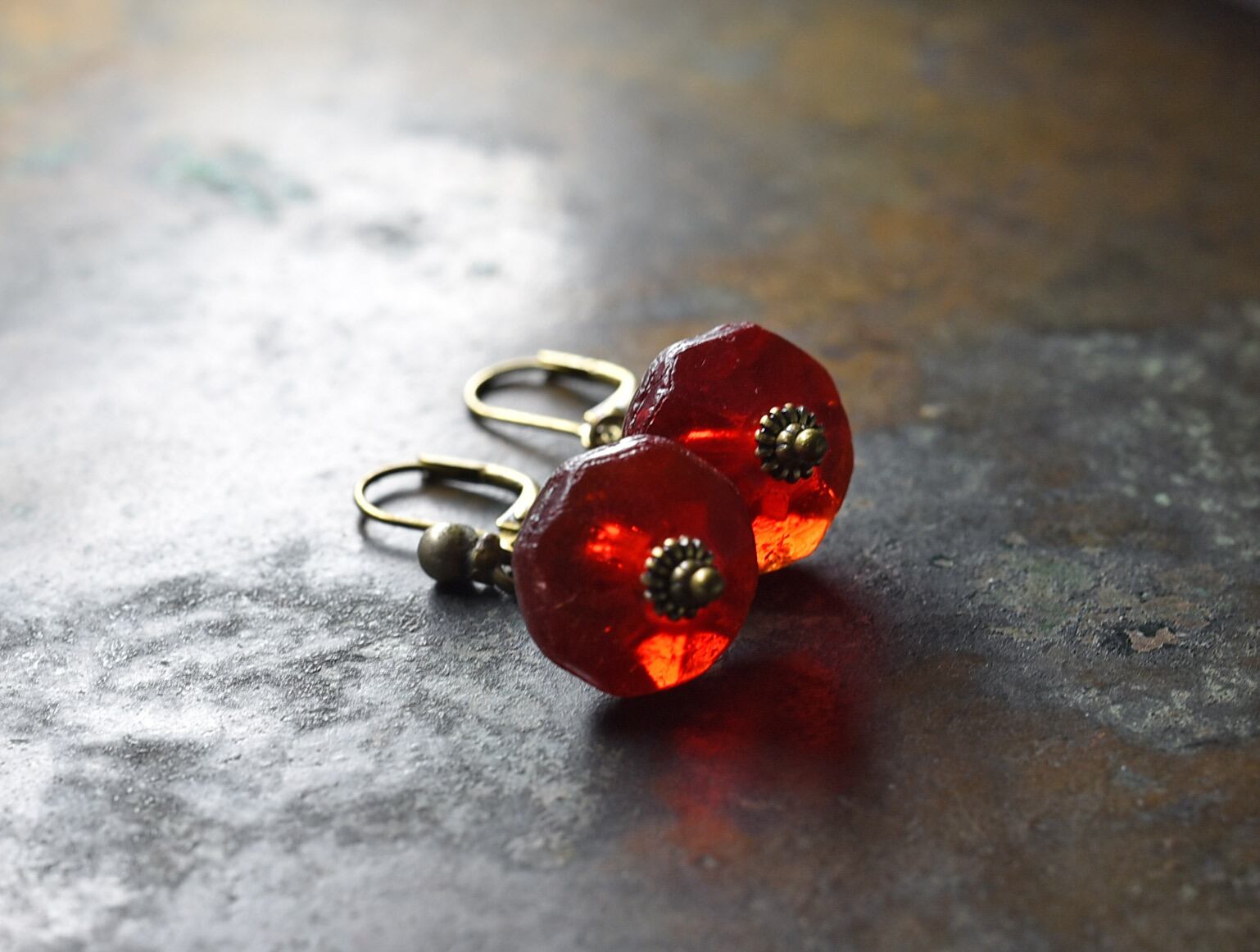 真っ赤な算盤型のビーズは20世紀初頭のボヘミアビーズです。