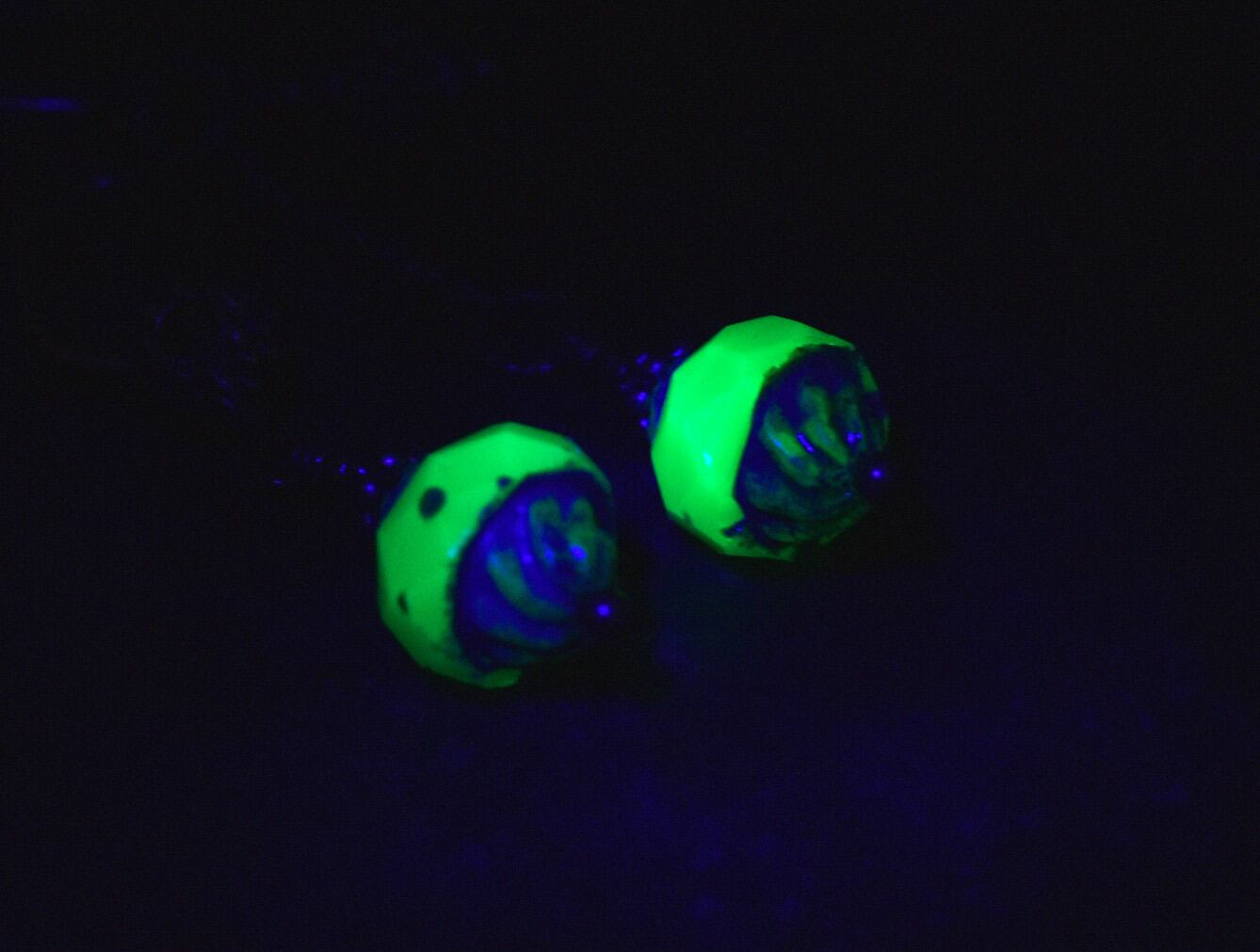 こちらはチェコ産の現行品です。ブラックライトを当てると蛍光します。
