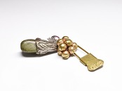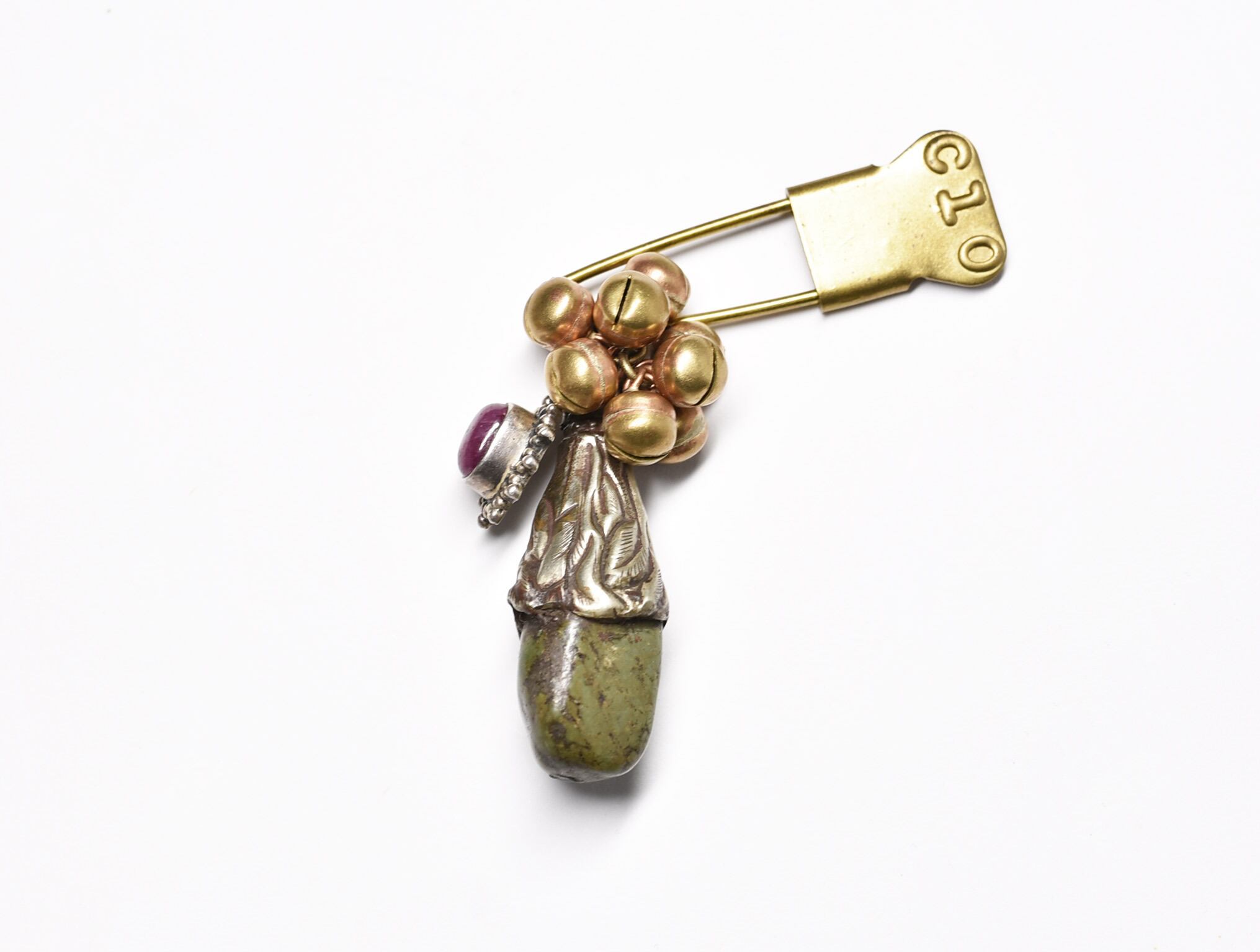 メタル装飾ターコイズと、ルビートップ、たわわな鈴のランドリーピンブローチ