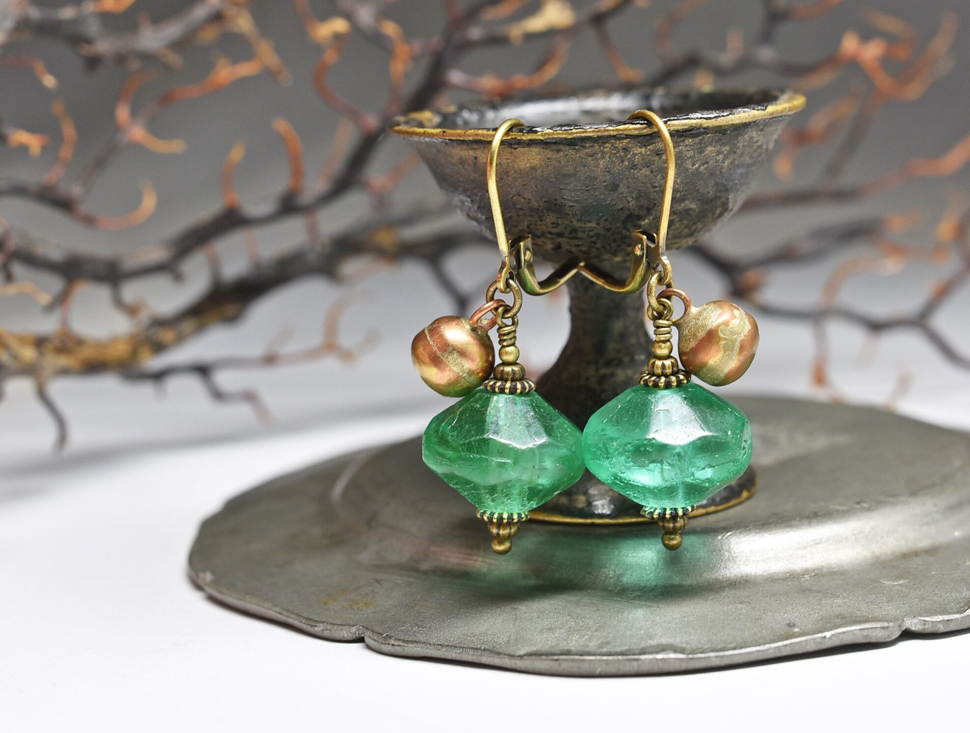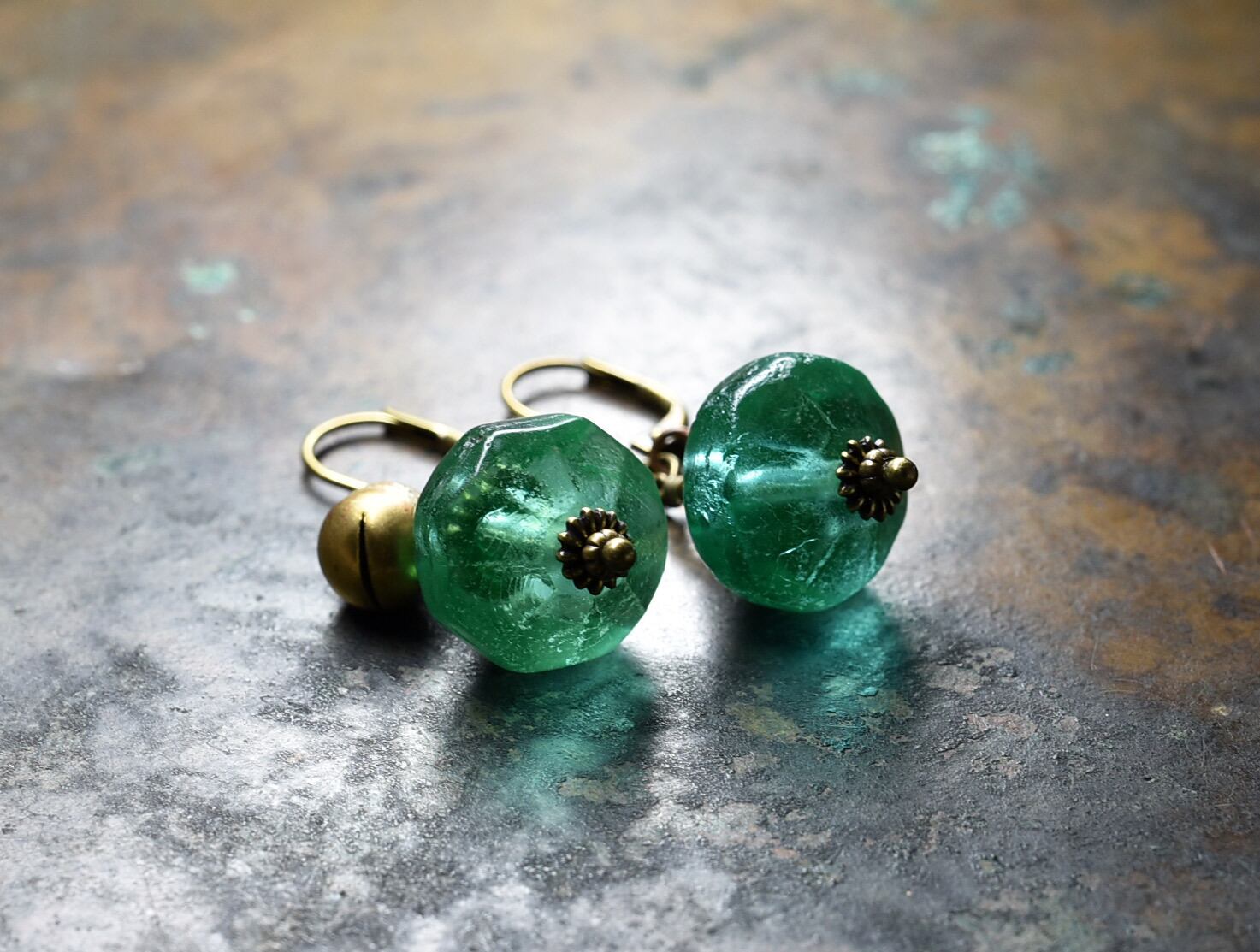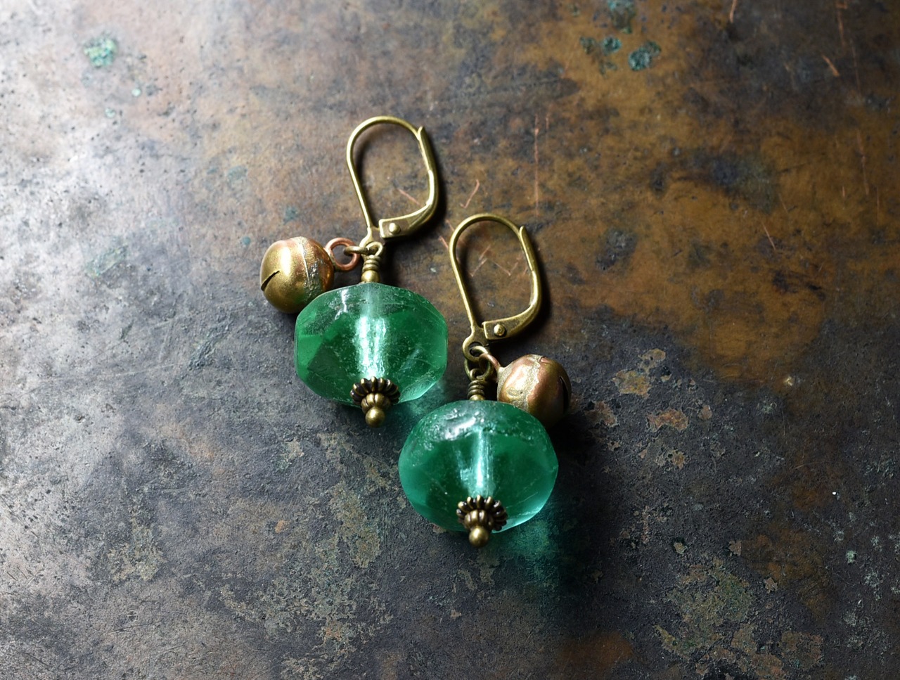 アンティークウランガラスと鈴のピアス