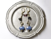 サファイアアゲートとオニキス、ガーネットを少し大き目なリングやチェーンで繋いだピアスです。
