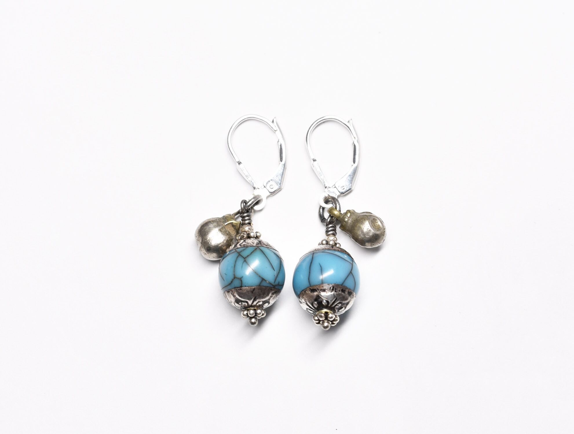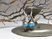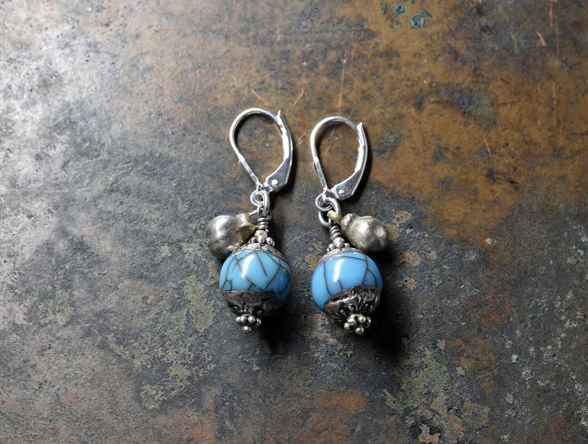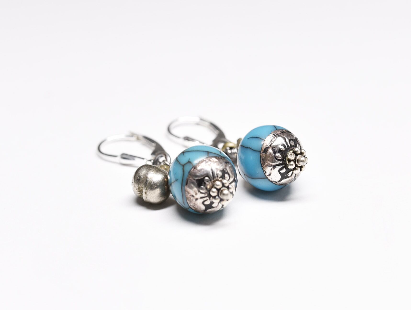 ターコイズブルー色アフガニスタンパーツと小さな鈴のシルバーピアス