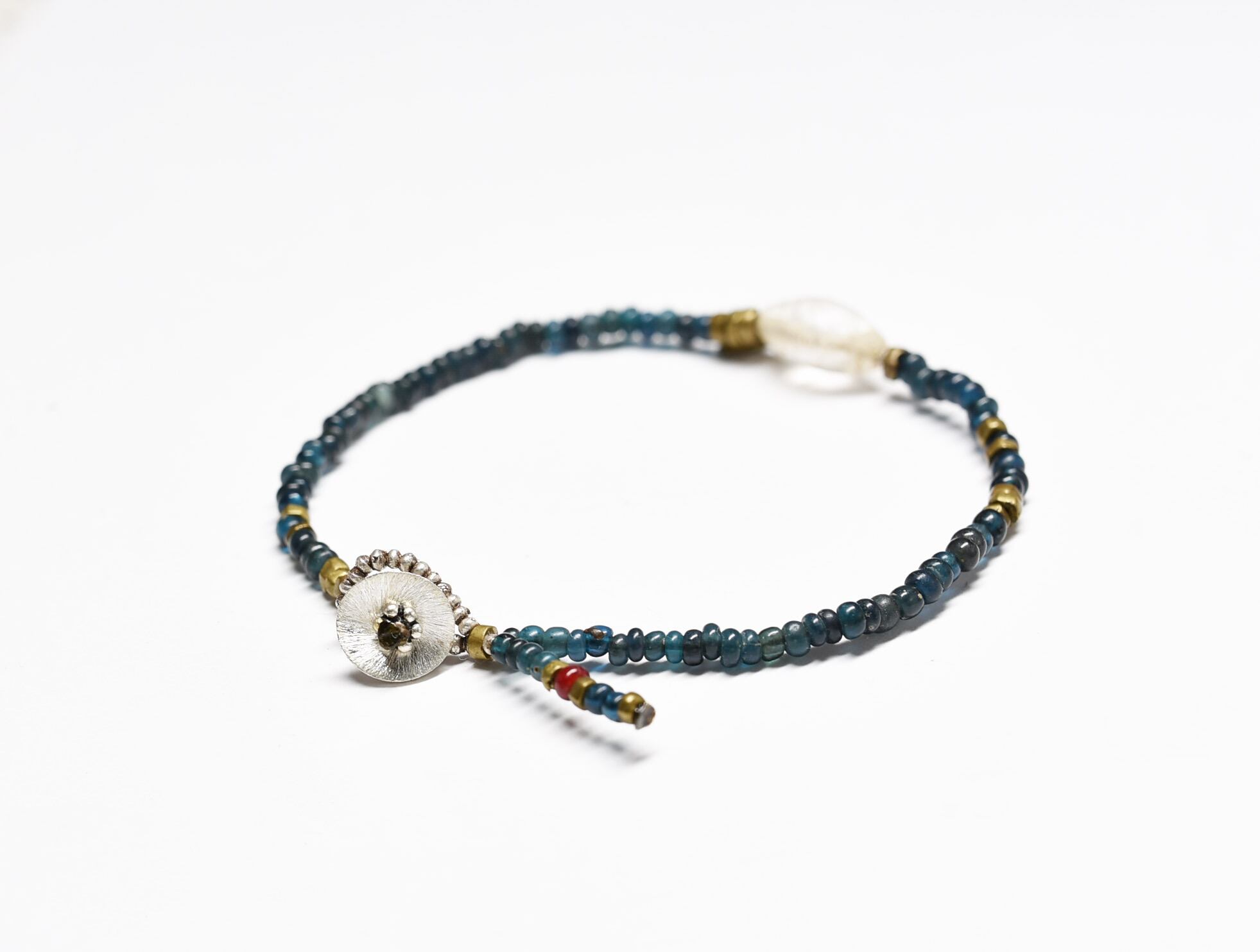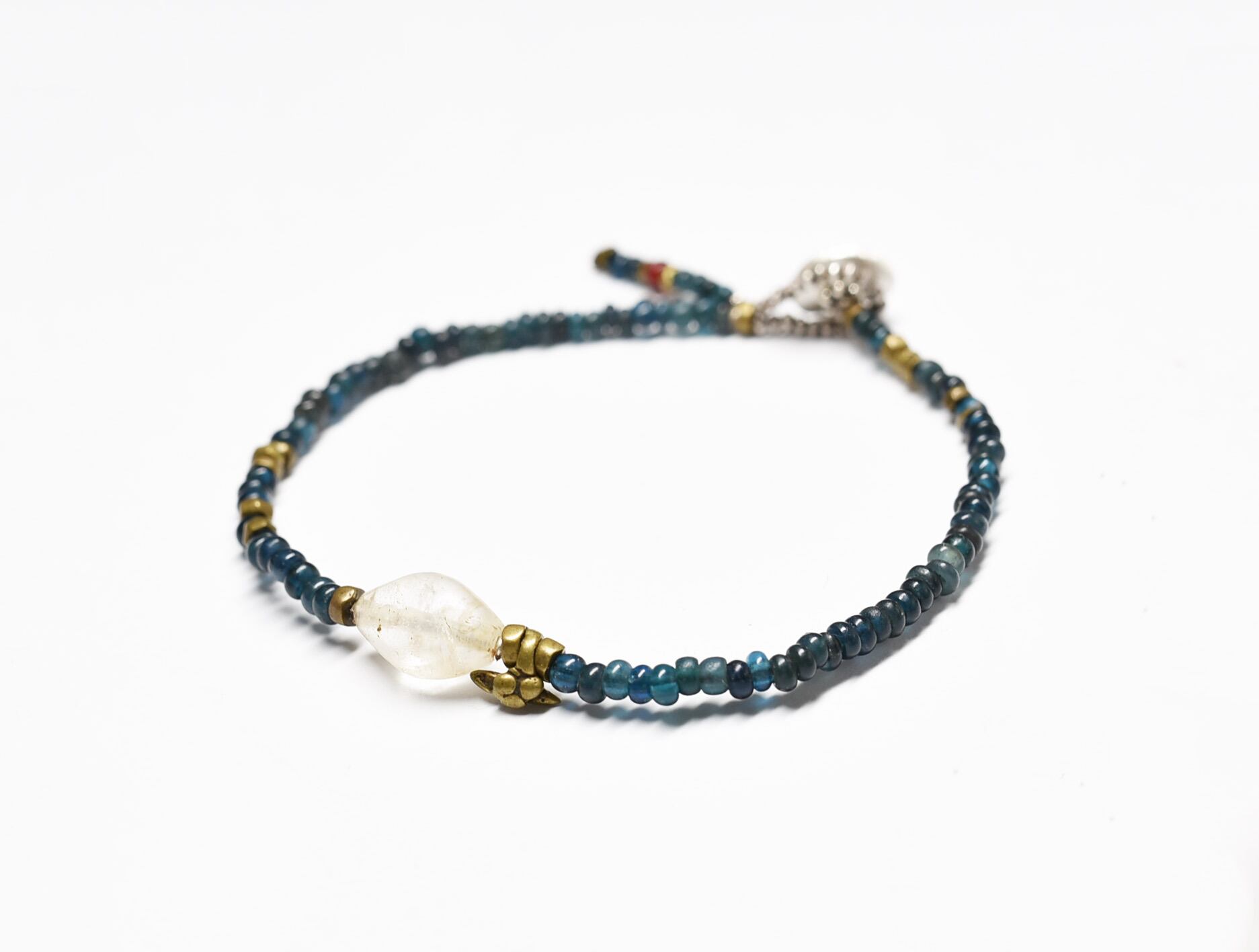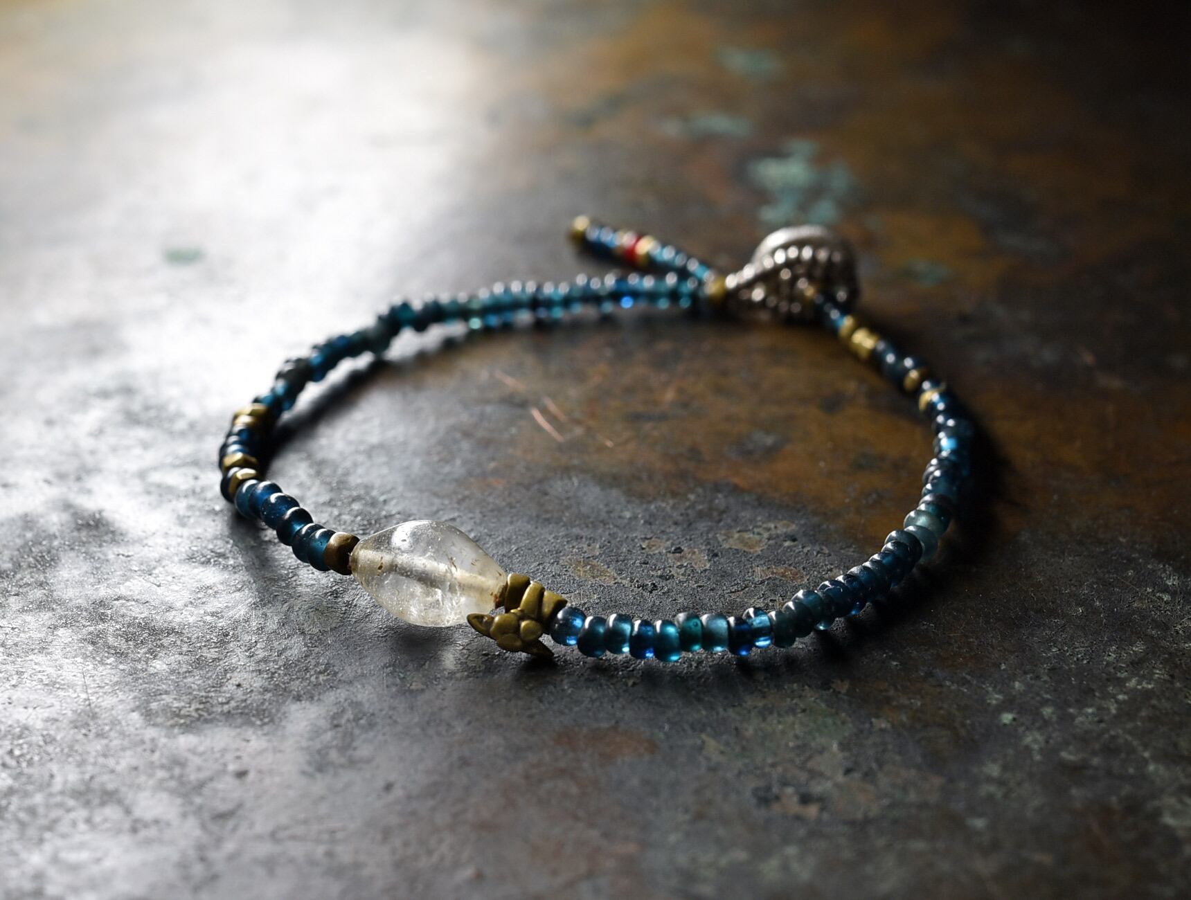 古代水晶水晶とインディゴブルービーズ、oldオリッサブラスを繋いだ華奢なブレスです。