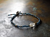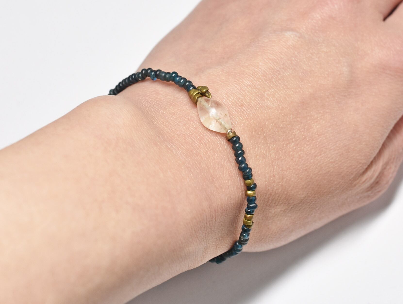 古代水晶とoldオリッサブラス、インディゴブルービーズの華奢なブレス