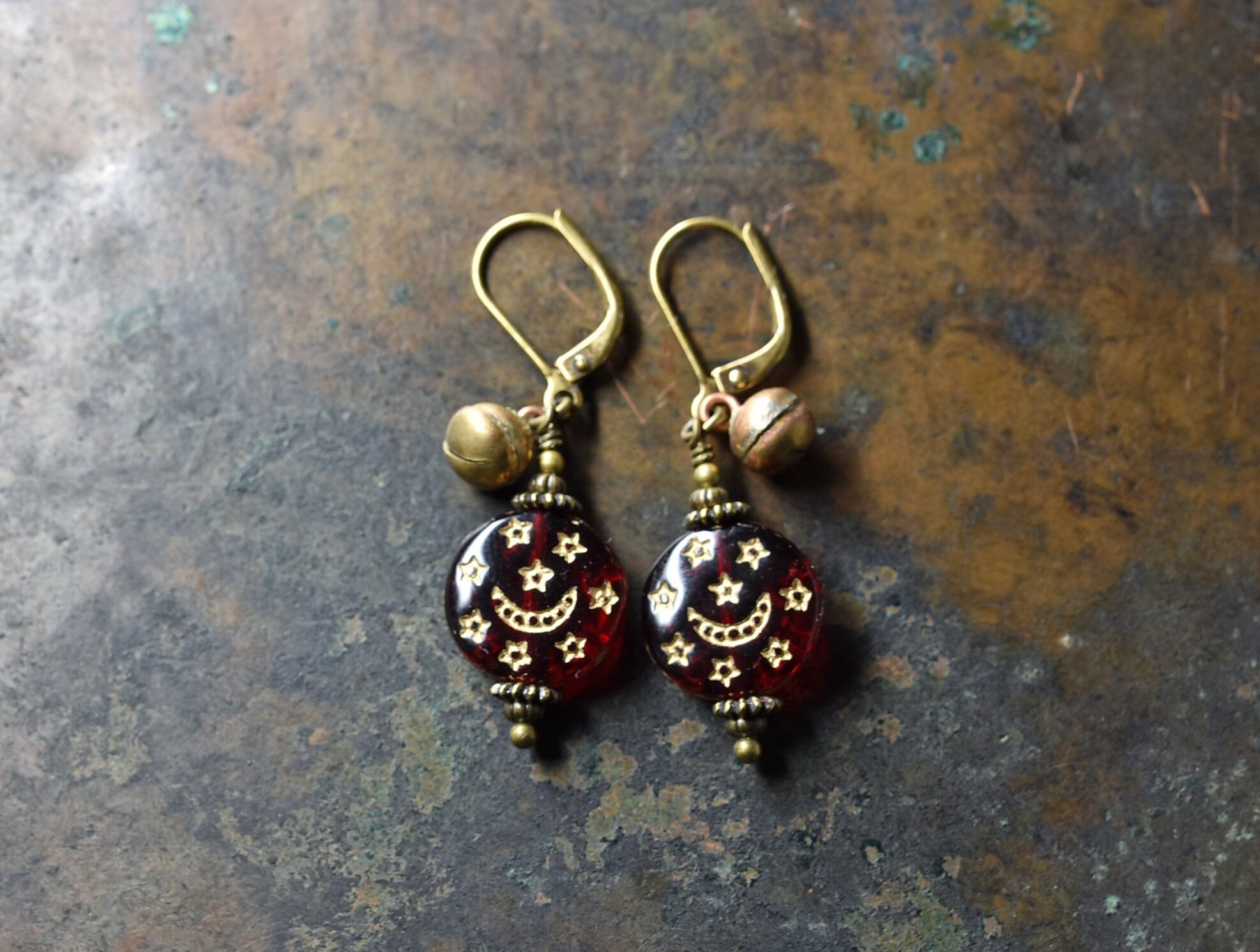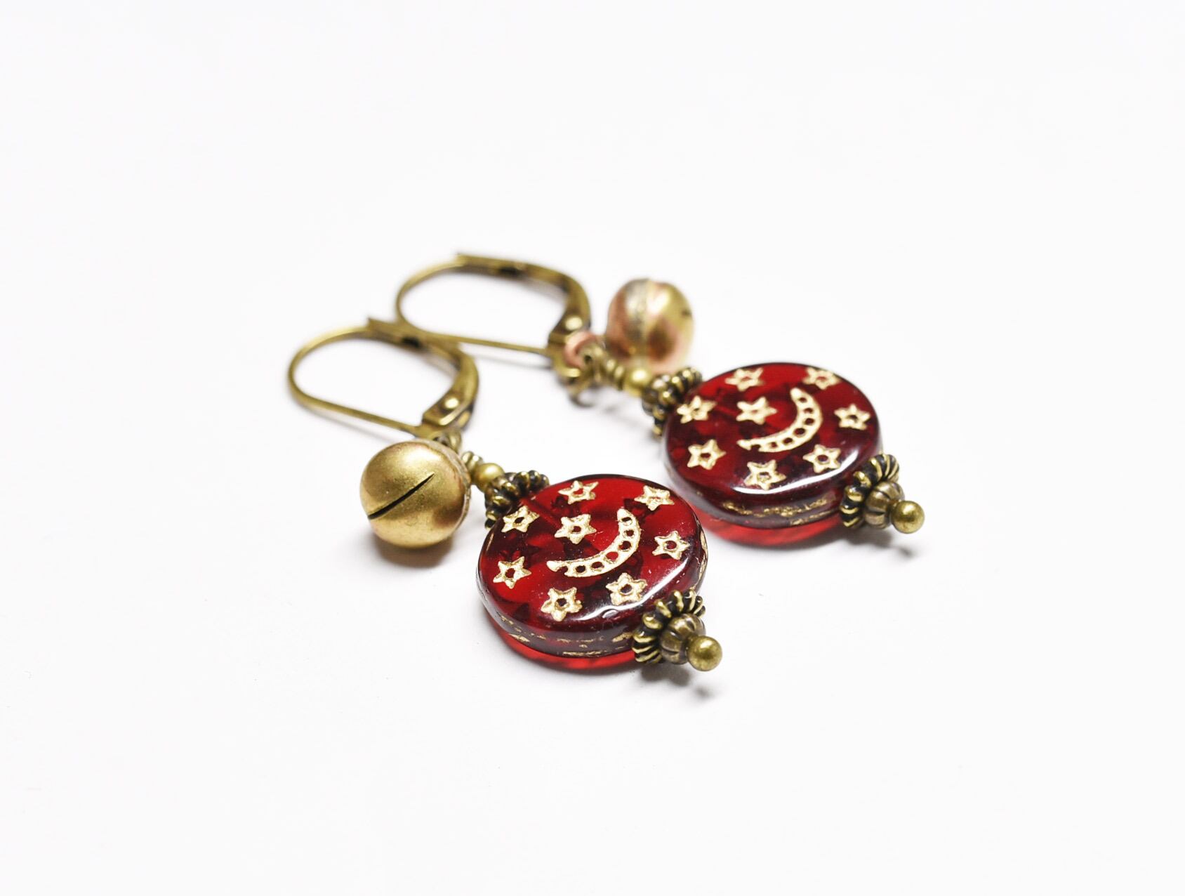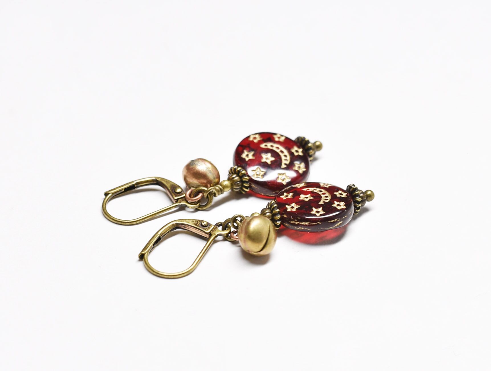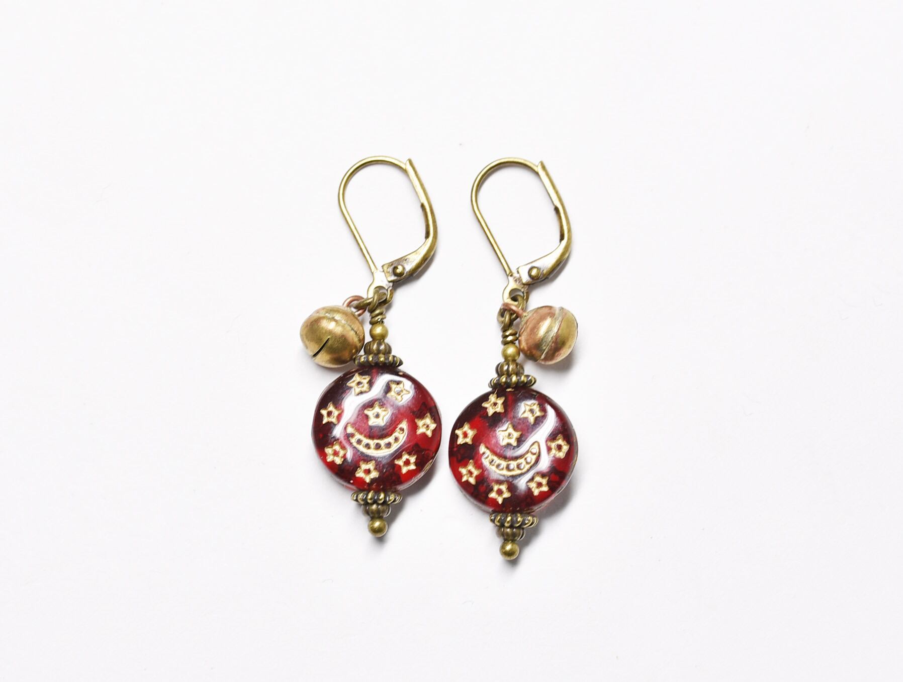 月と星の模様が施された聖者のビーズと、小さな鈴を繋いだピアスです。
