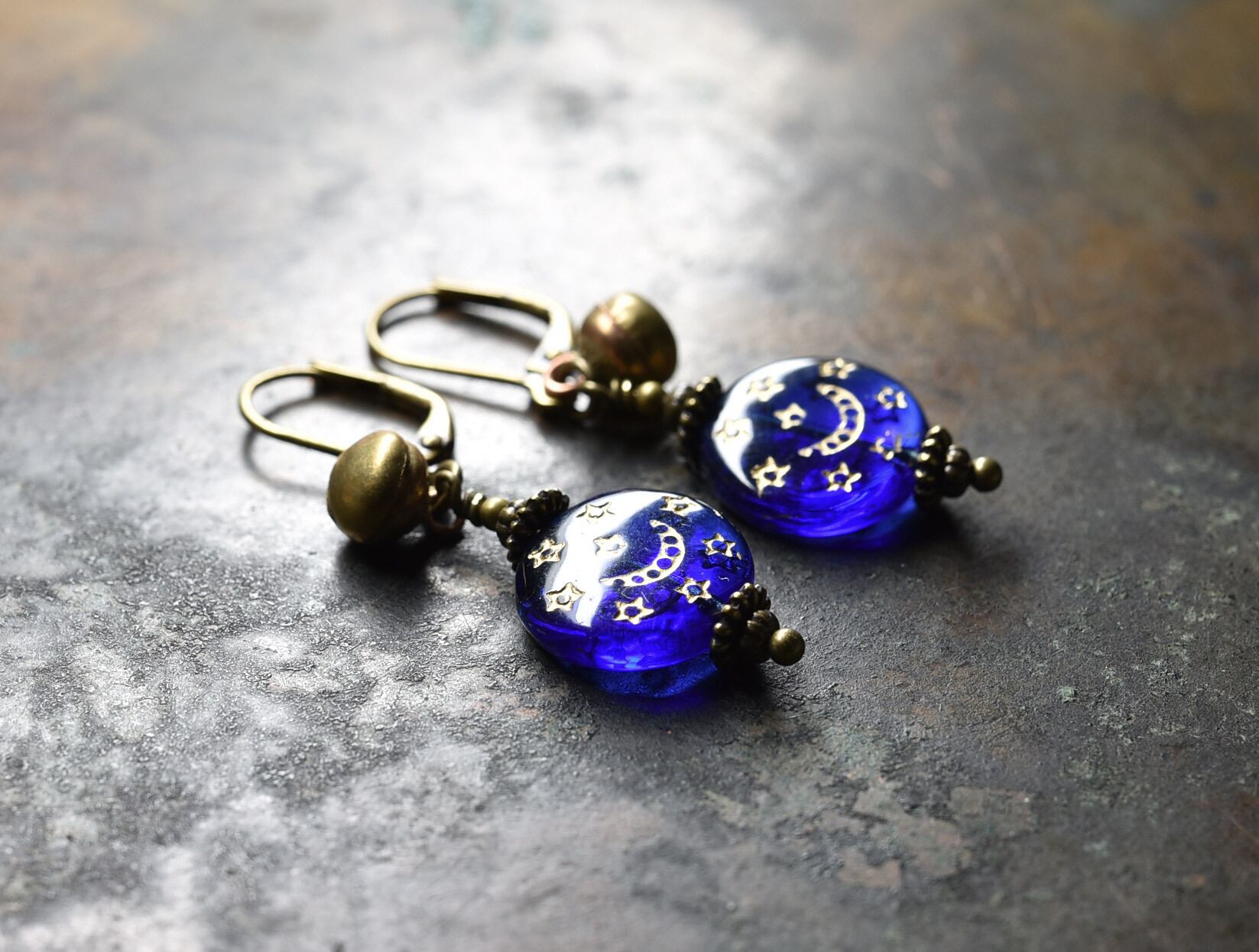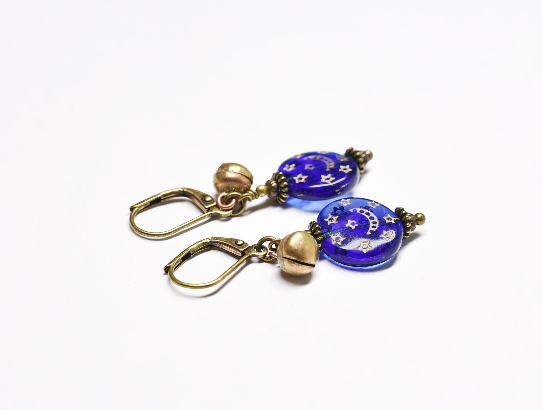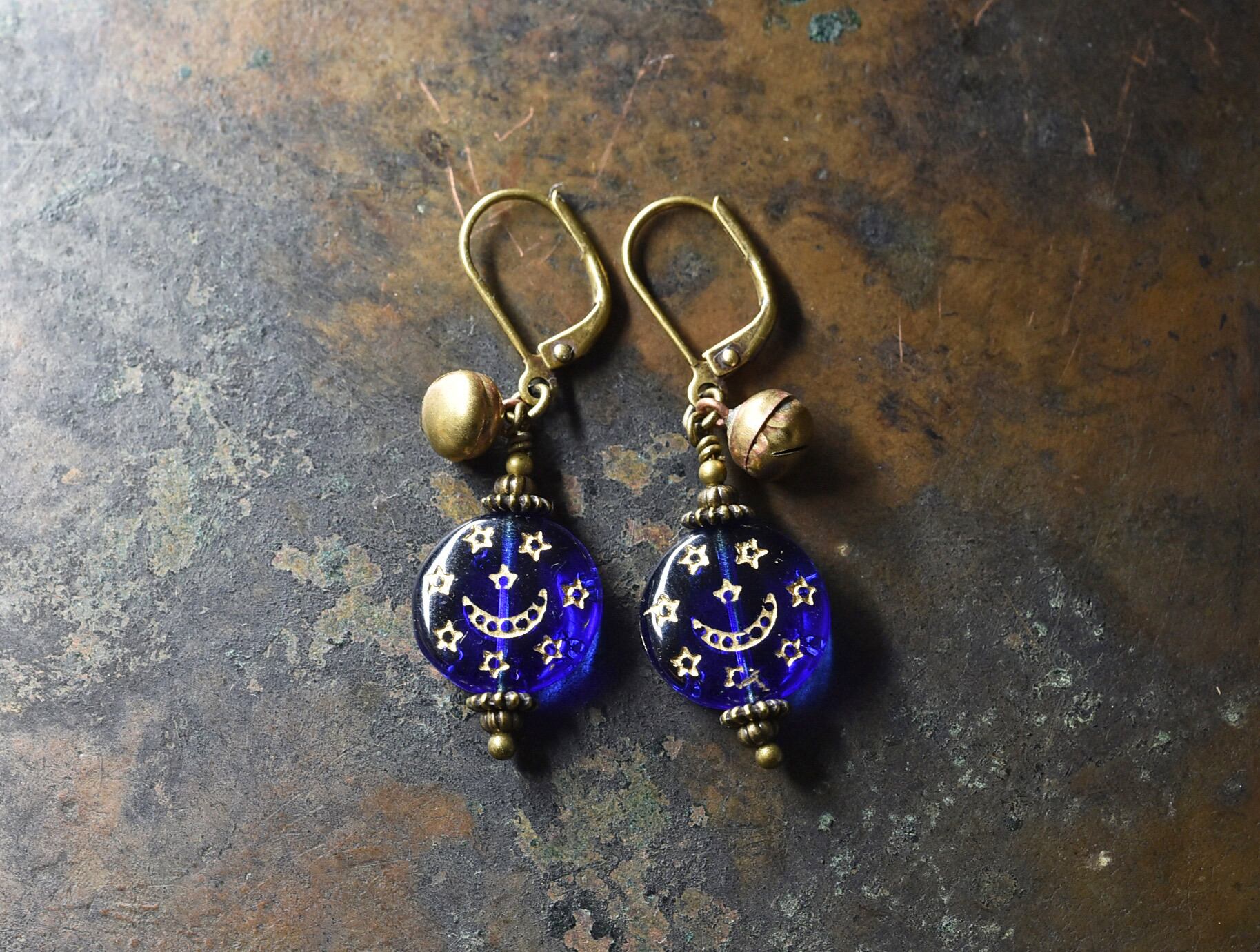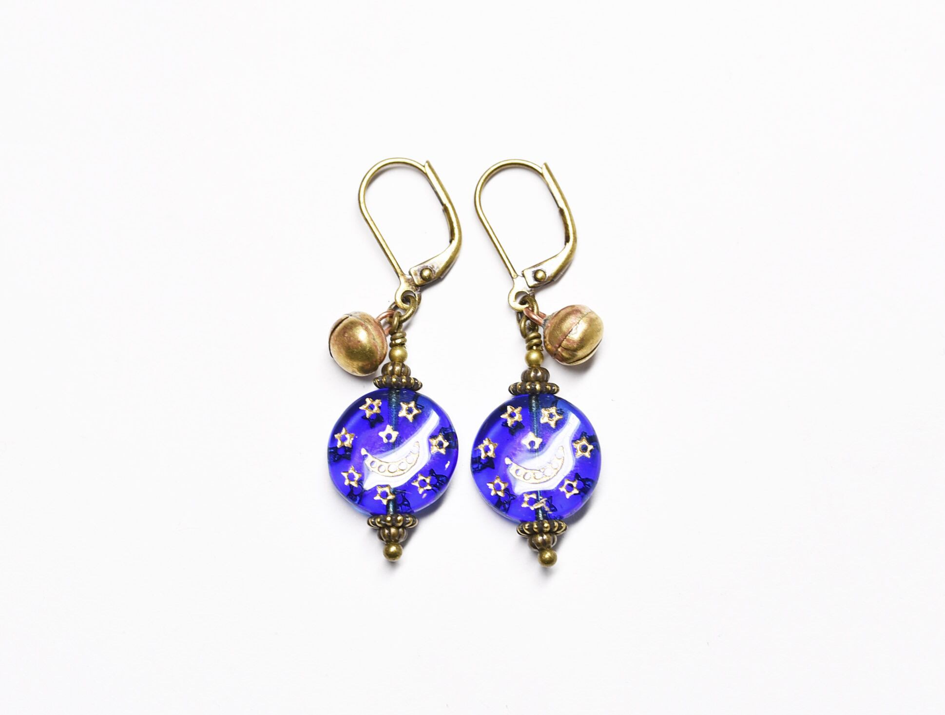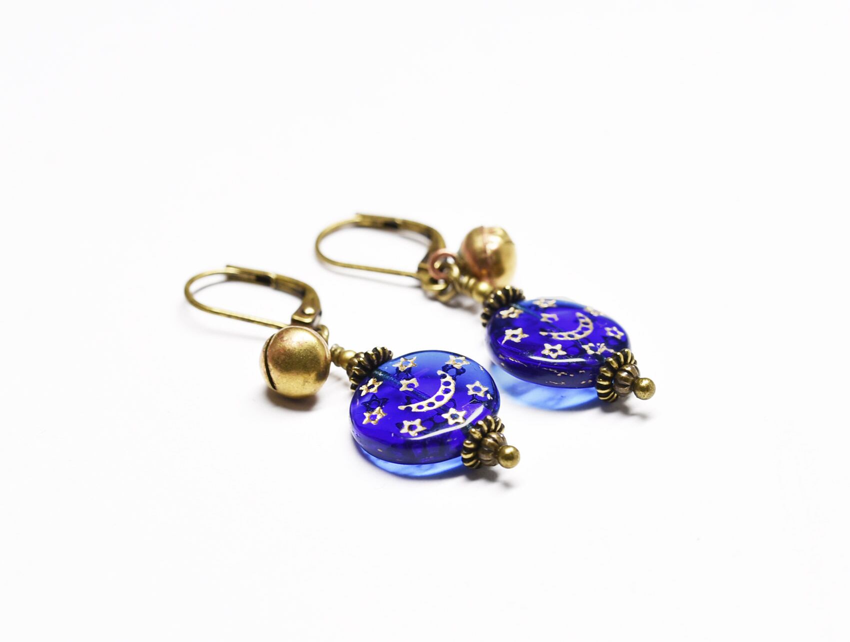 月と星の模様が施された聖者のビーズと、小さな鈴を繋いだピアスです。