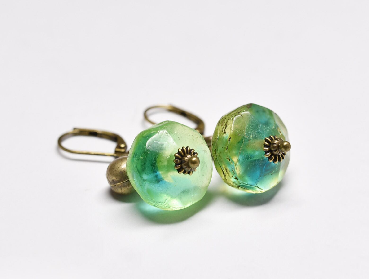 古いガラスの中に秘めた輝きを楽しめるピアスです。