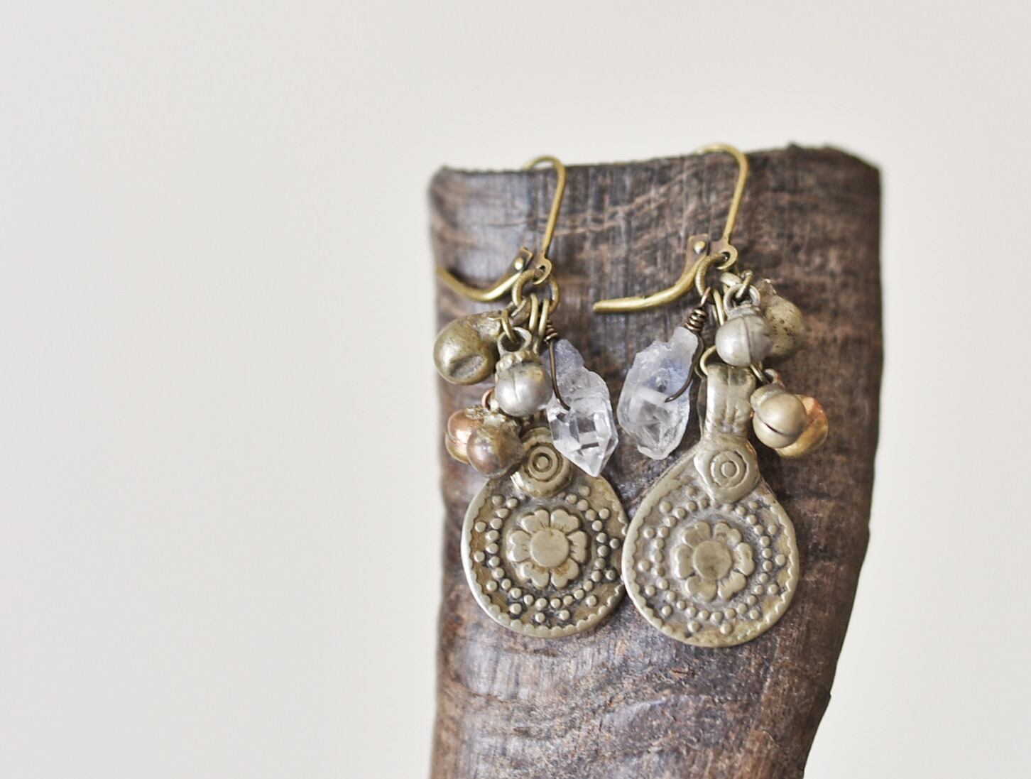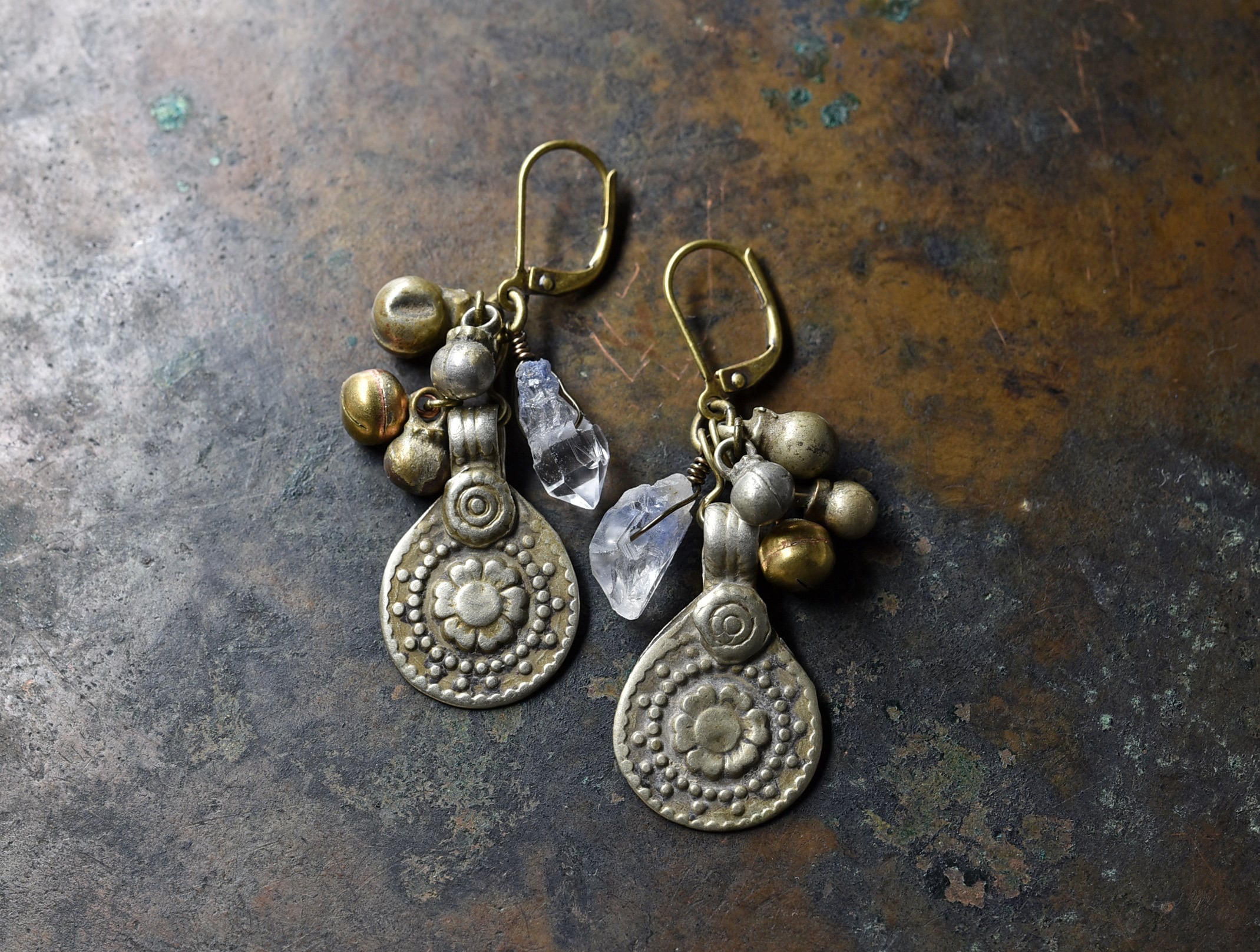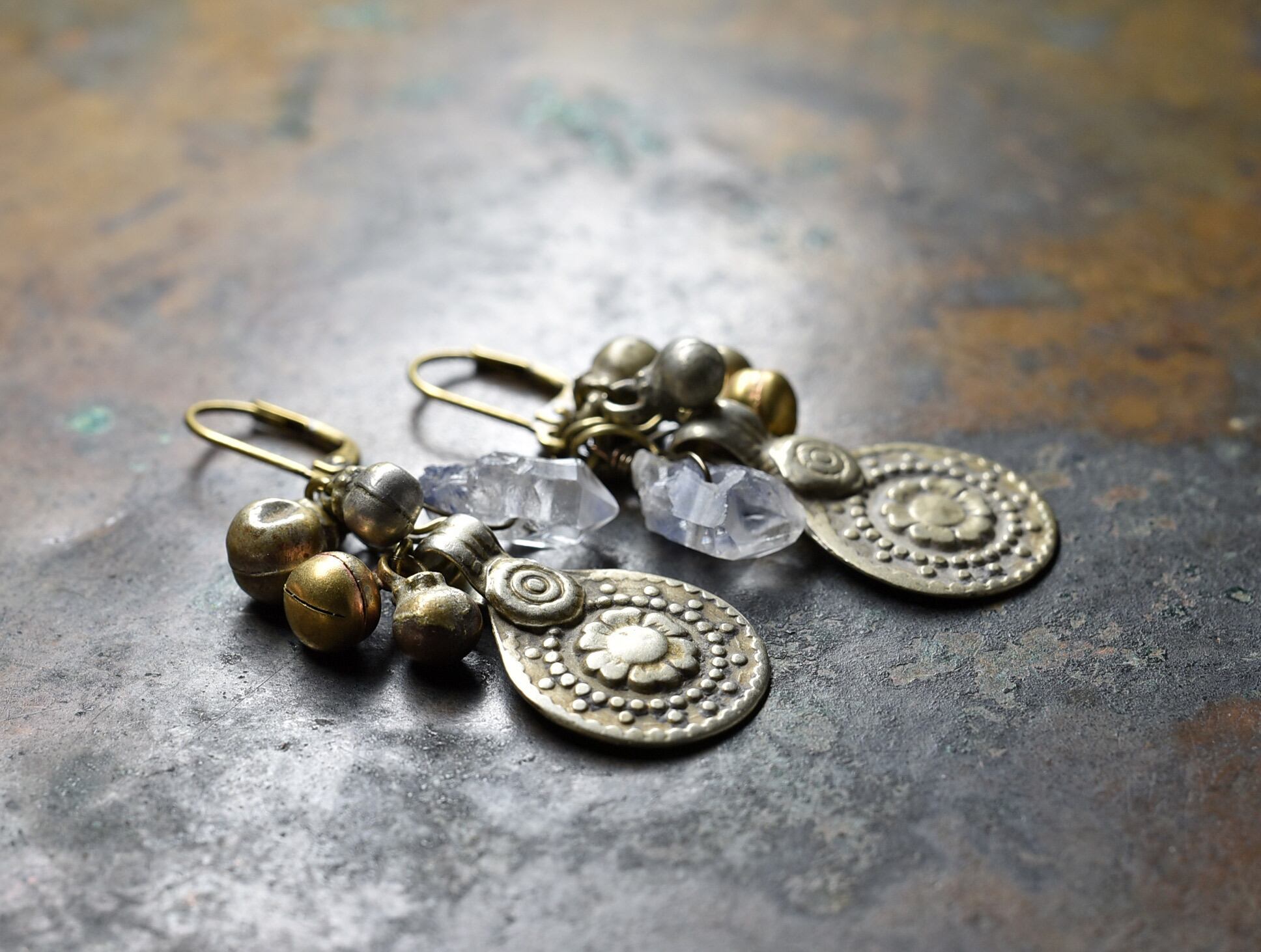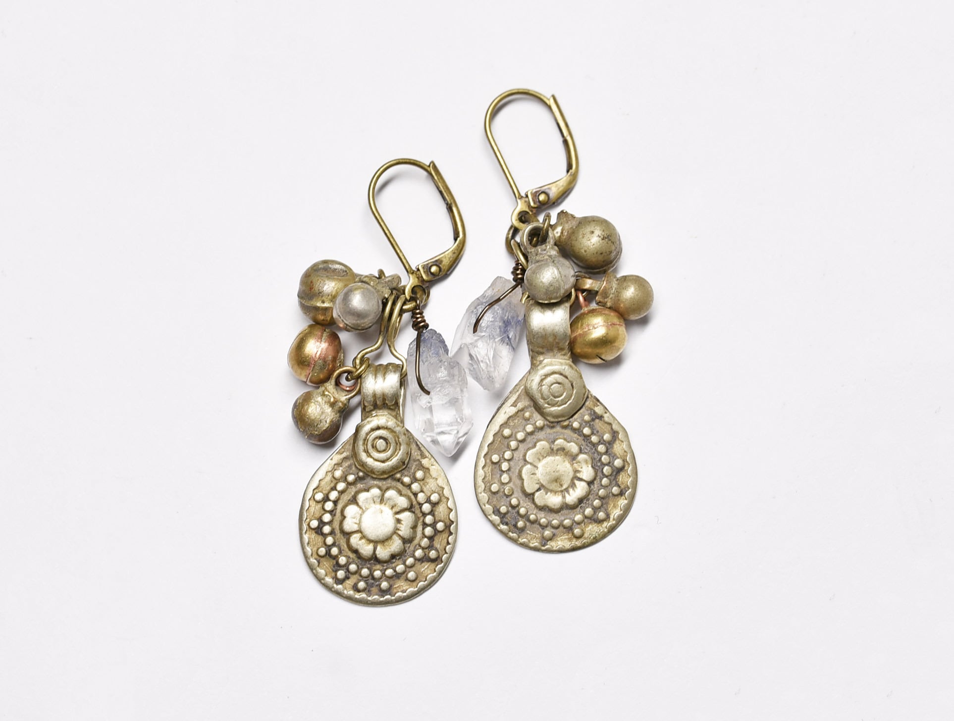 アフガニスタンメタルパーツとたわわな鈴、デュモルチェライトインクォーツのピアス