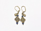 エンドレスノットとダークブルーアンティークビーズ、鈴のピアス