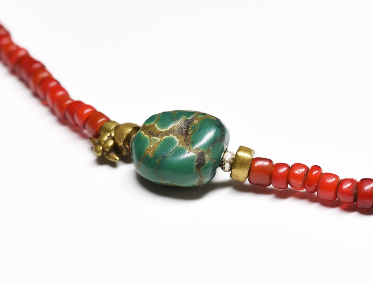 金色のビーズと、ターコイズの横の小さなチャームはoldオリッサブラスです。インドのオリッサ州から届いた古くて希少なビーズです。