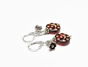 聖者のビーズと小さなカレンシルバーのお花ピアス(ダークレッド)