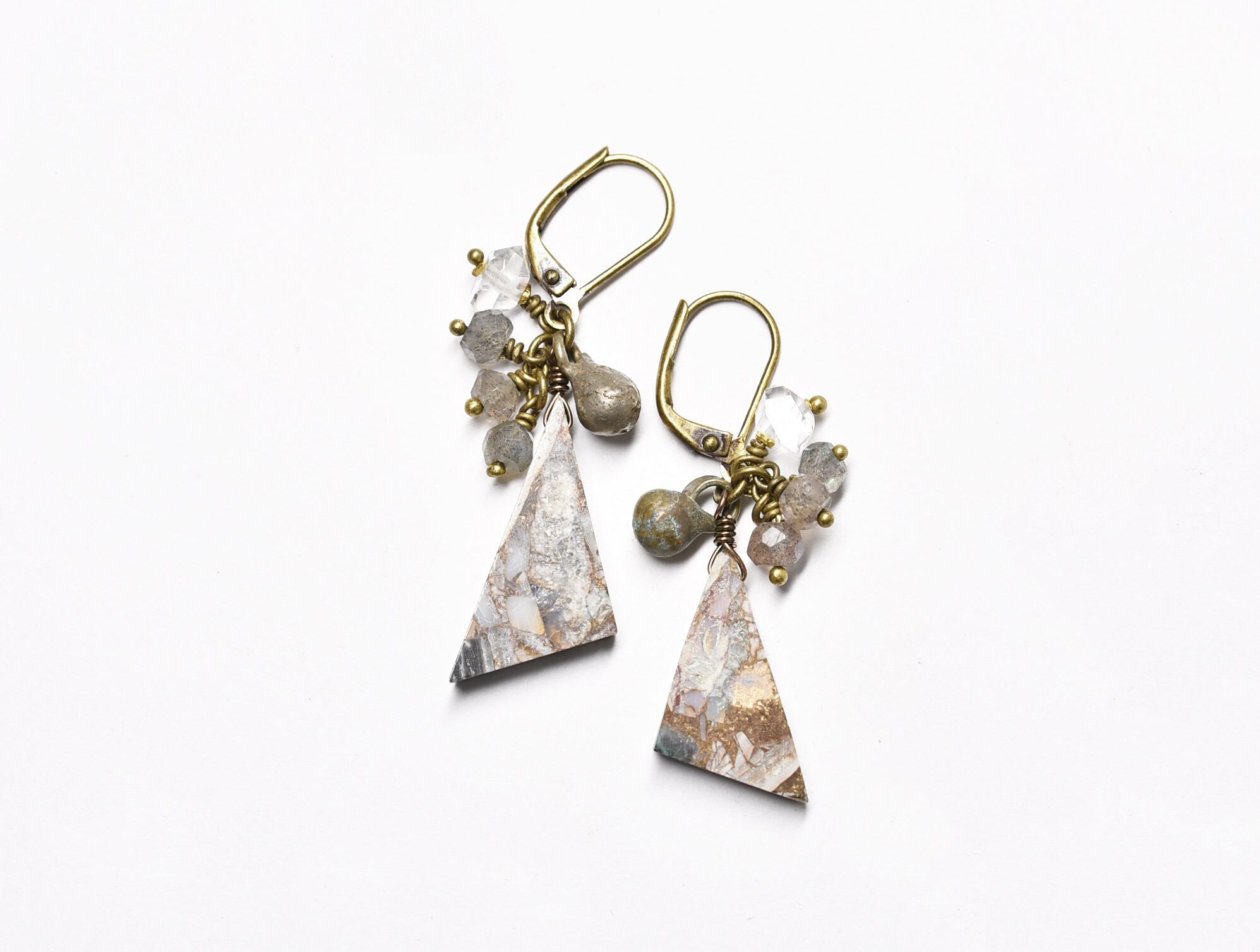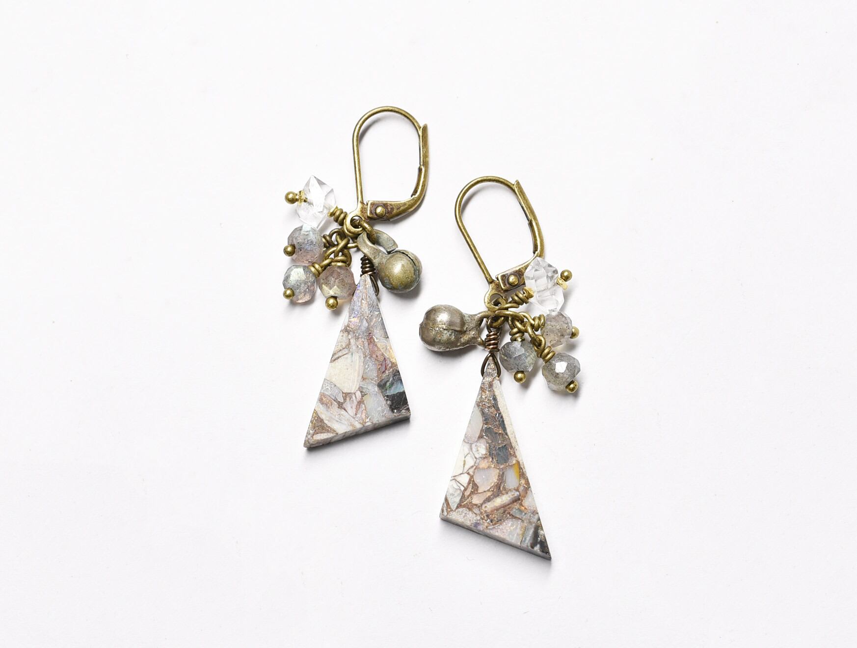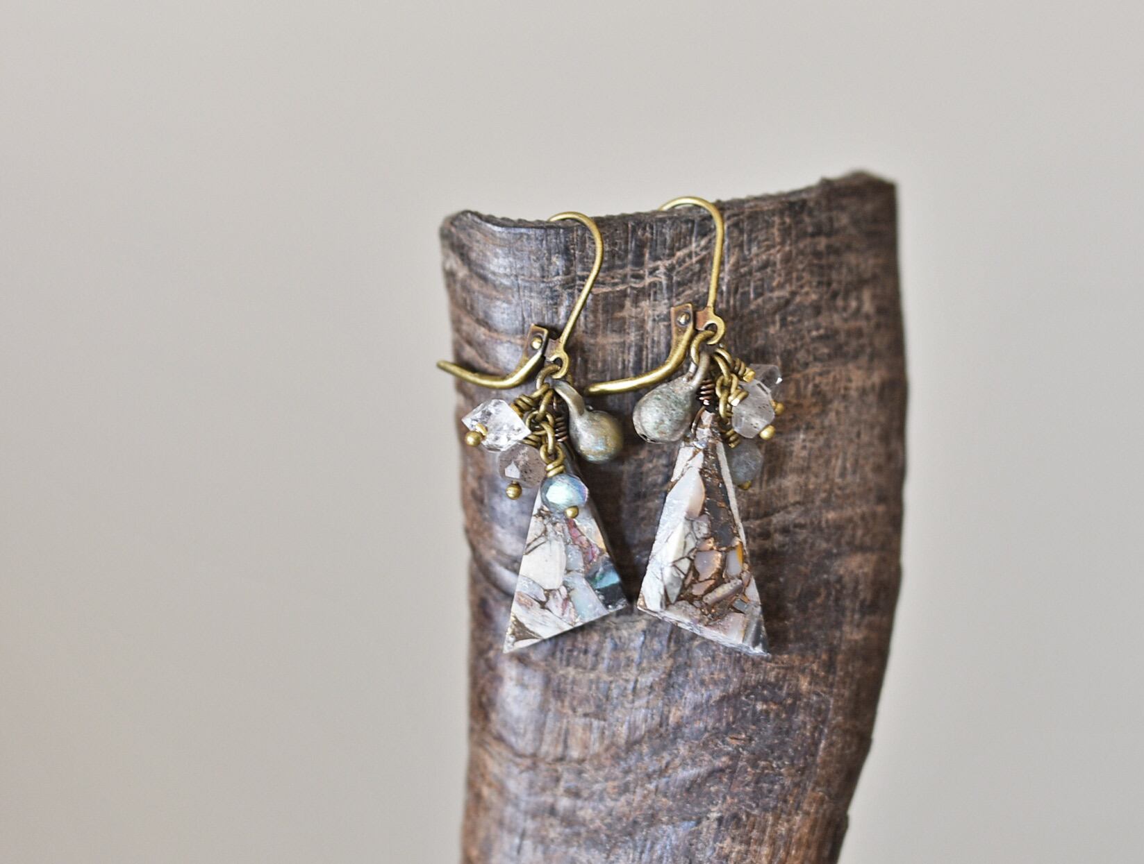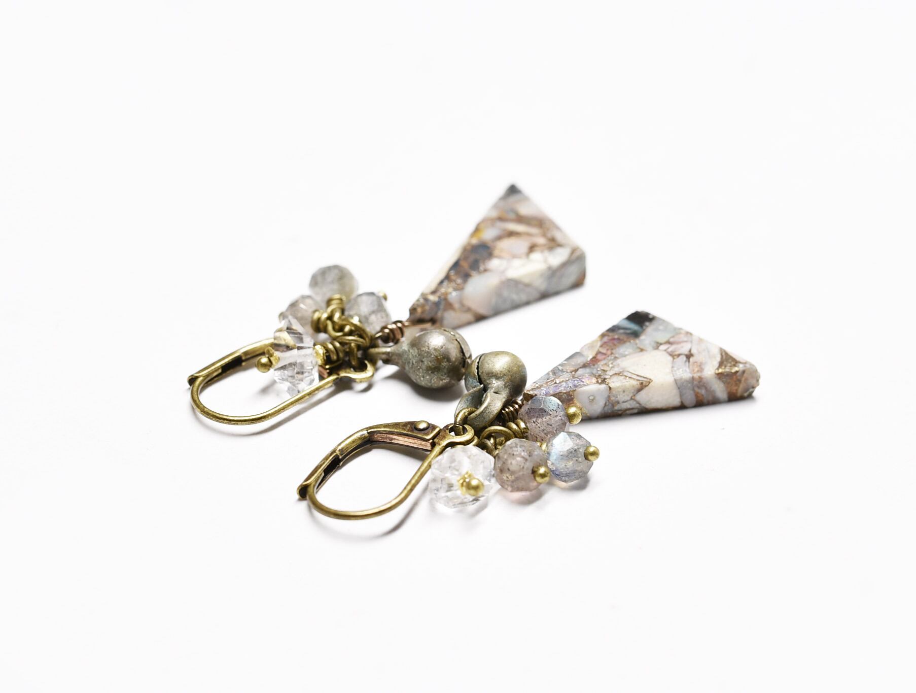 素材:コッパーオパー、ラブラドライト、ハーキマーダイヤモンド、ミックスメタル、真鍮