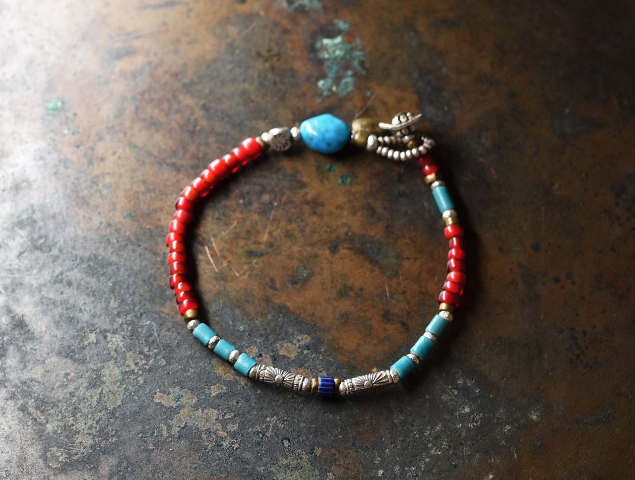 ベネチアビーズの発色の良さの中に、経年の味わいが楽しめるブレスです。