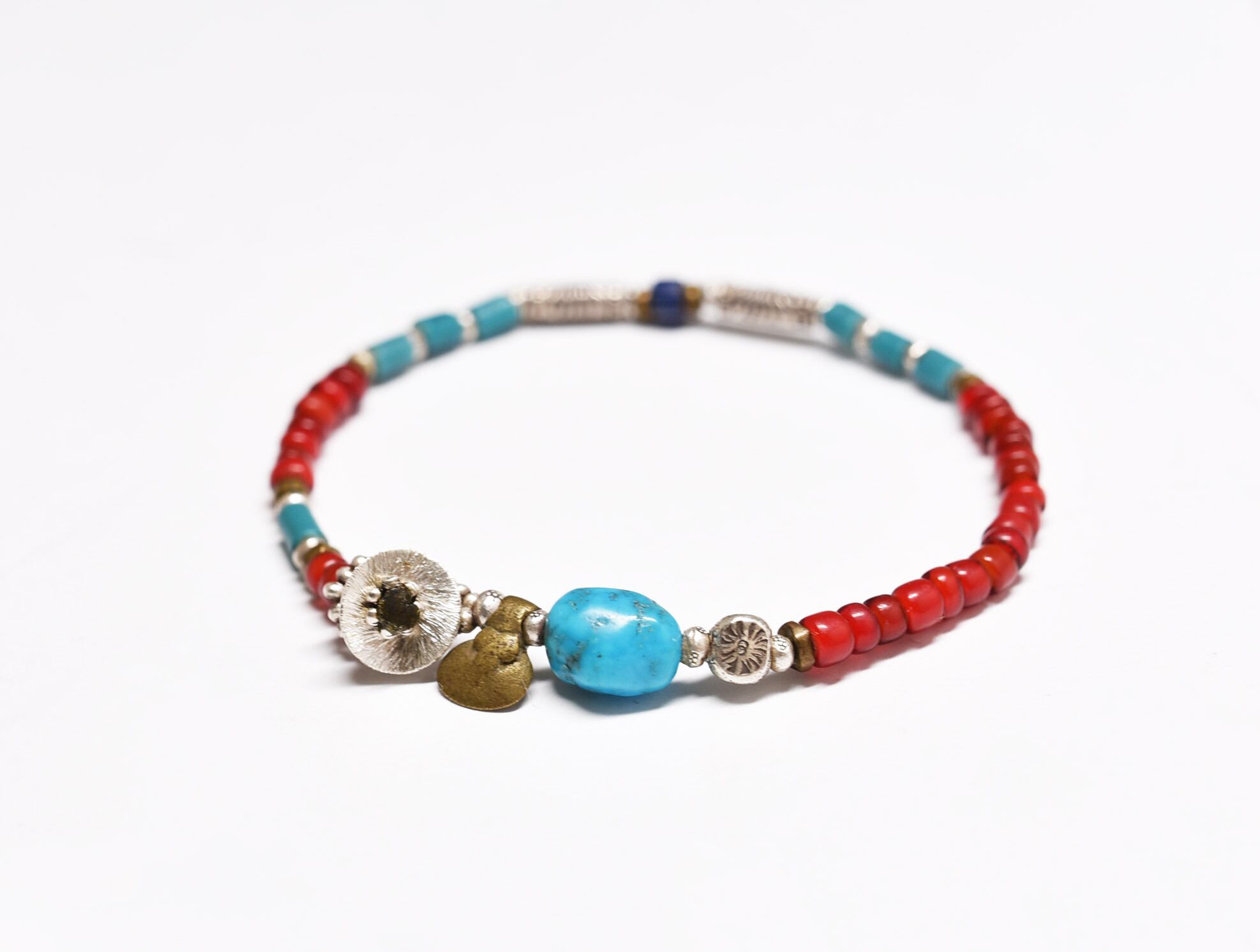 少しくすんだターコイズブルーのビーズや赤色のビーズはホワイトハーツです。