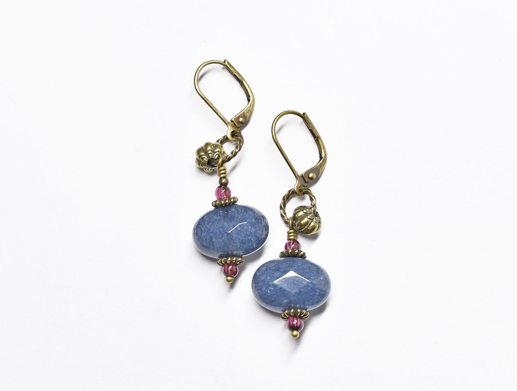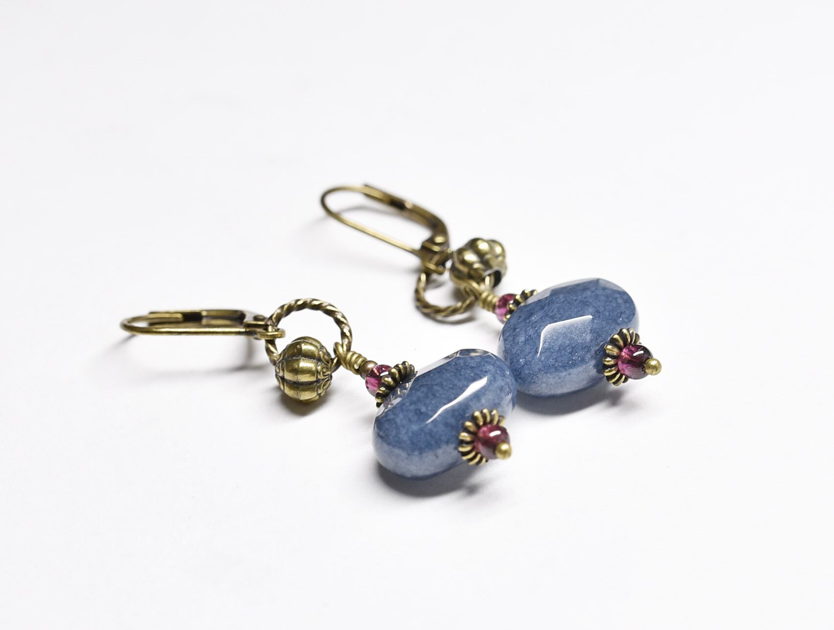 サファイアアゲートとガーネットをリングに繋いだピアスです。