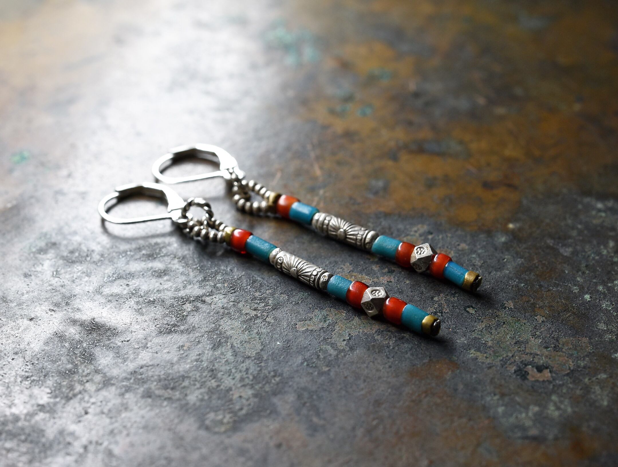 ベネチアビーズの発色の良さの中に、経年の味わいが楽しめるピアスです。