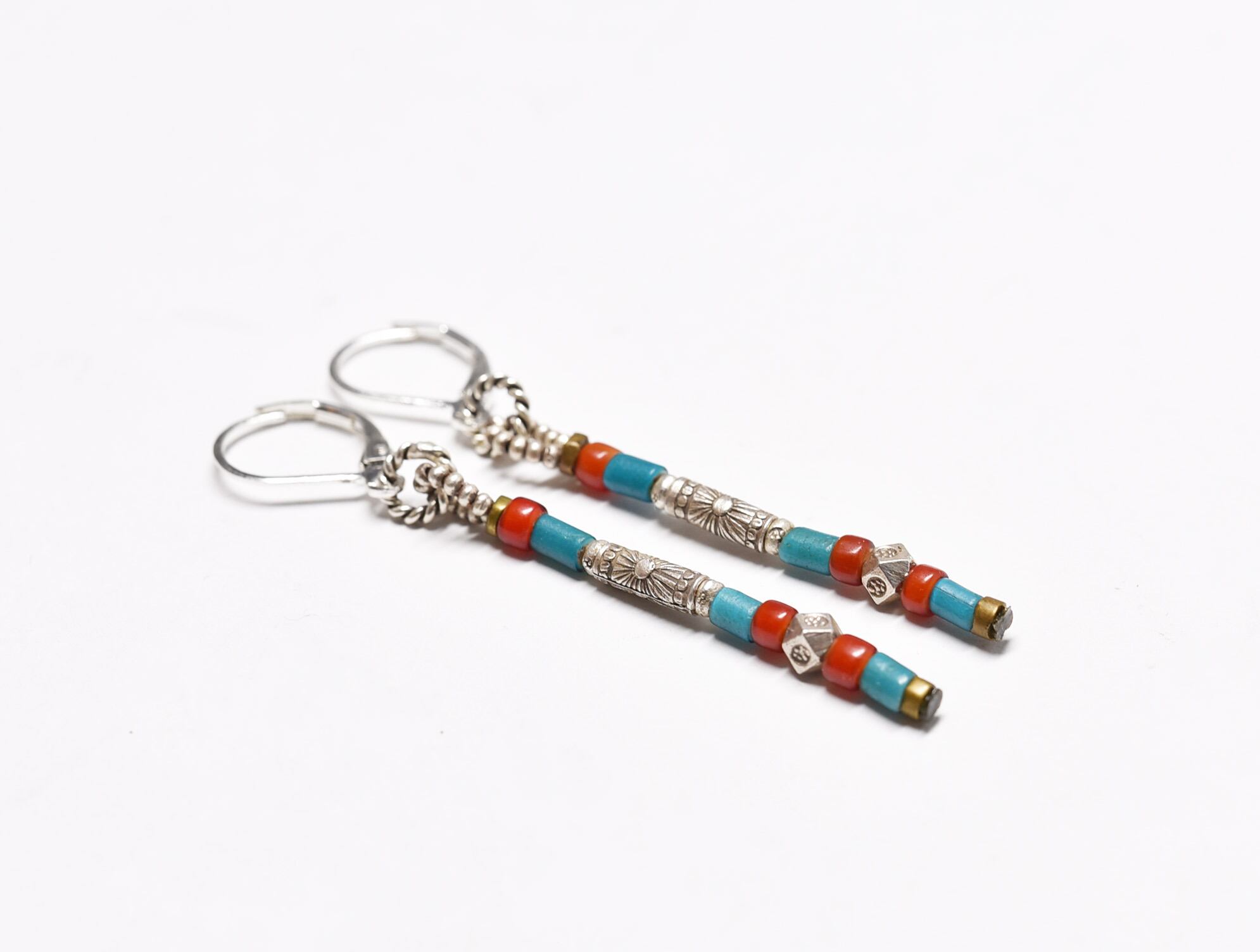 細長い管型のビーズ、間のシルバービーズや輪っか部分などはカレンシルバーです。