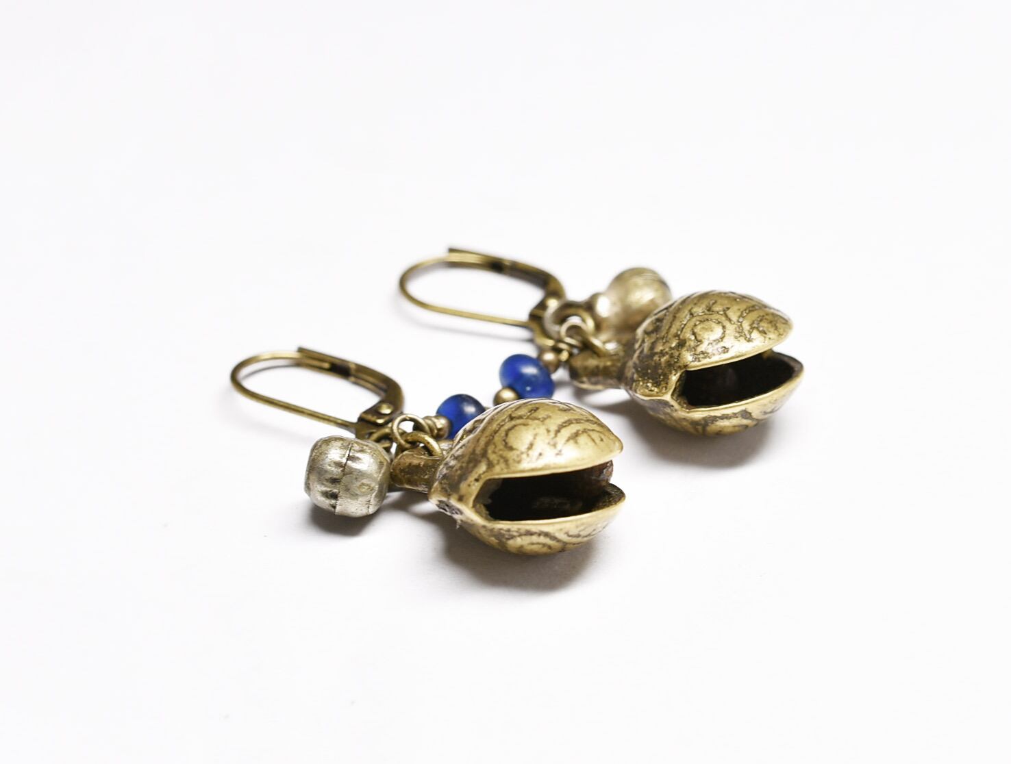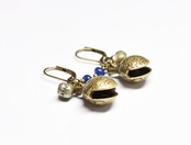 デッドストックベルと民族鈴、ダークブルービーズを繋いだピアスです。
