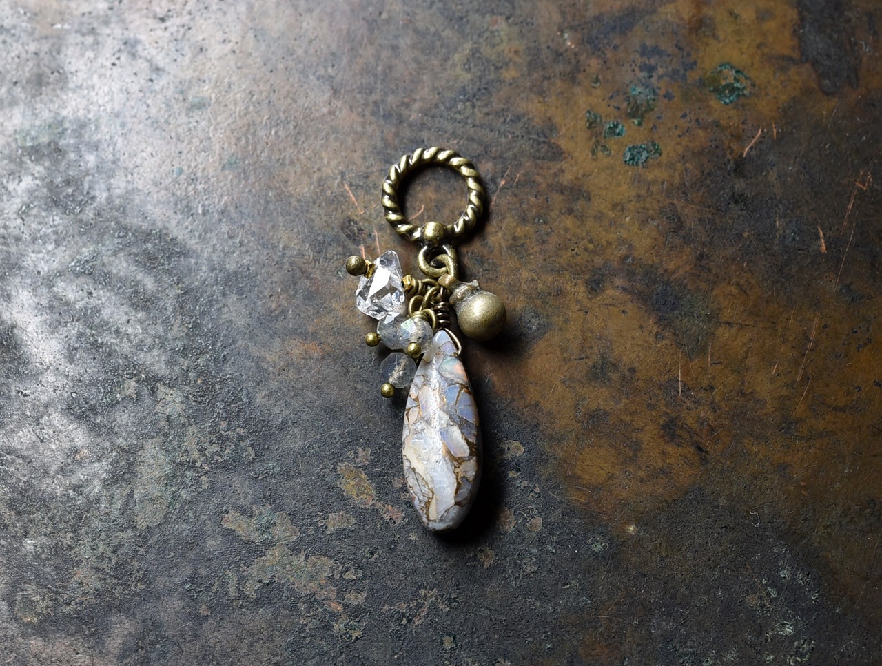 素材:コッパーオパー、ラブラドライト、ハーキマーダイヤモンド、ミックスメタル、真鍮