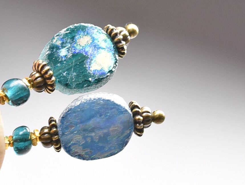 銀化の輝きがなくなっても古代のガラス自体の色を楽しめますので、育てる感覚で身に着けていただければ嬉しいです。