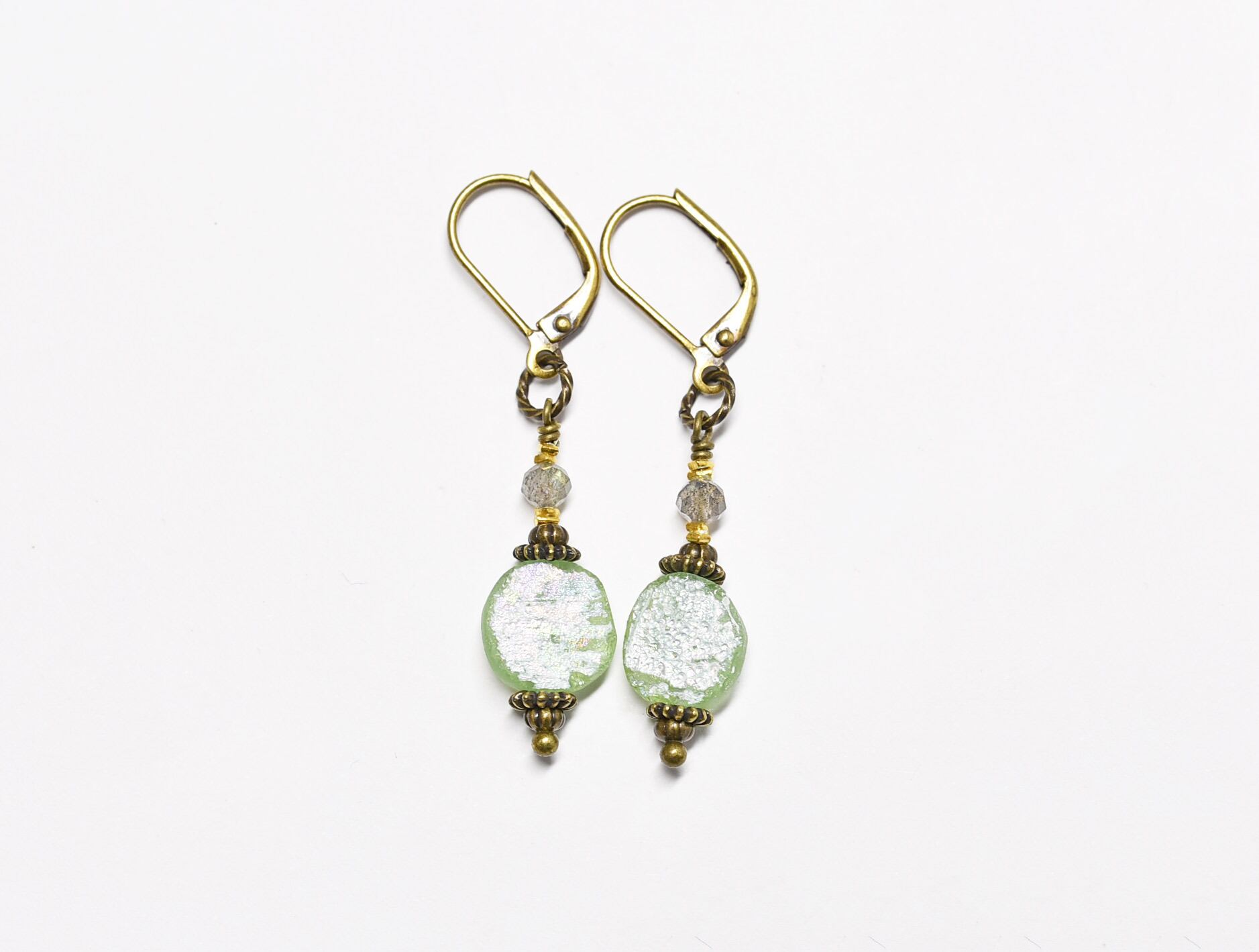 銀化萌黄色ローマングラスとラブラドライトのピアス