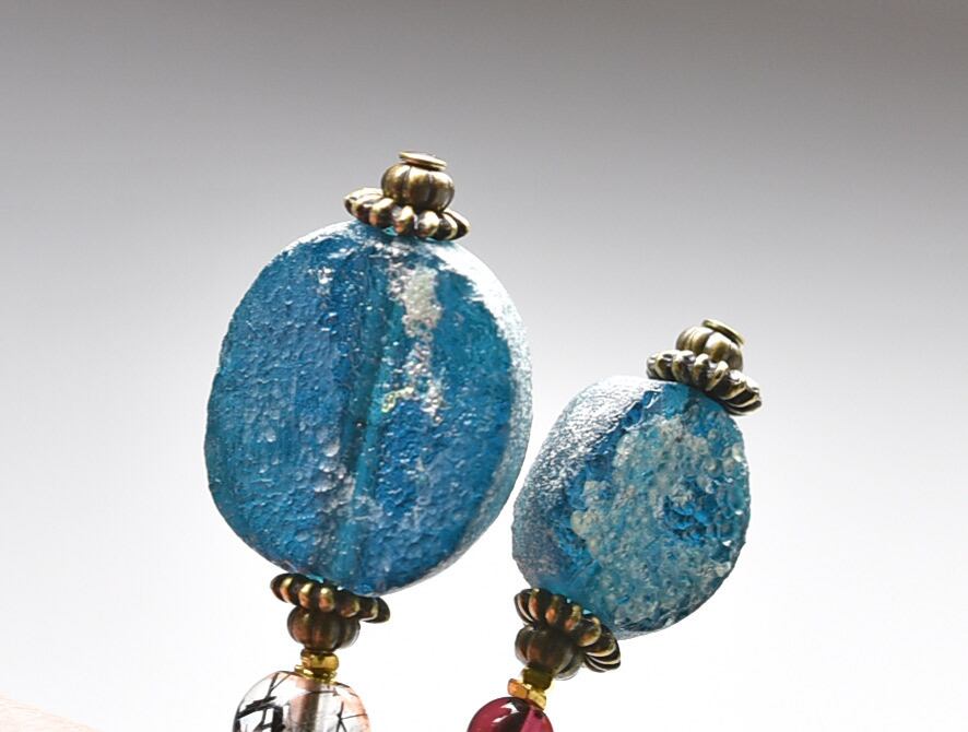 古代ガラスと天然石の美しが楽しめるピアスです。