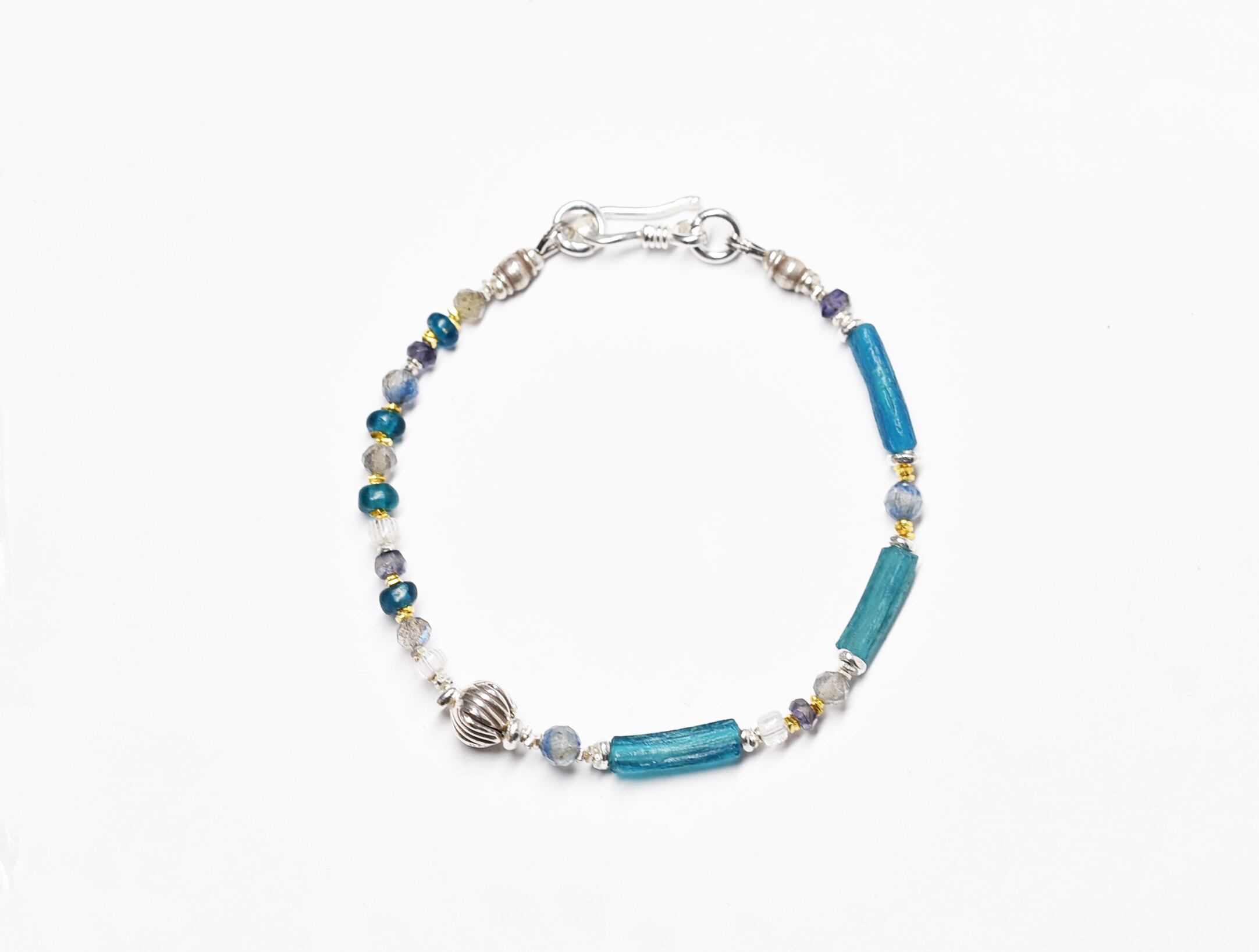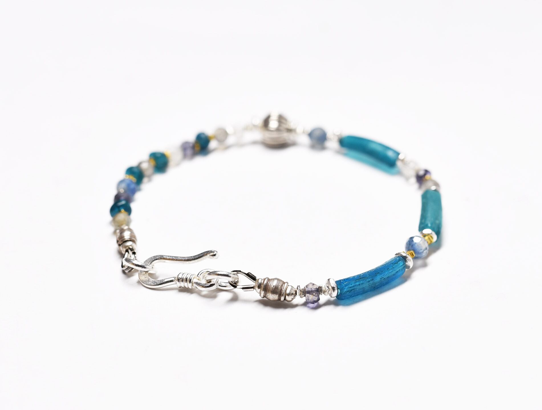 古代ガラスとストーンビーズが楽しめるブレスです。
