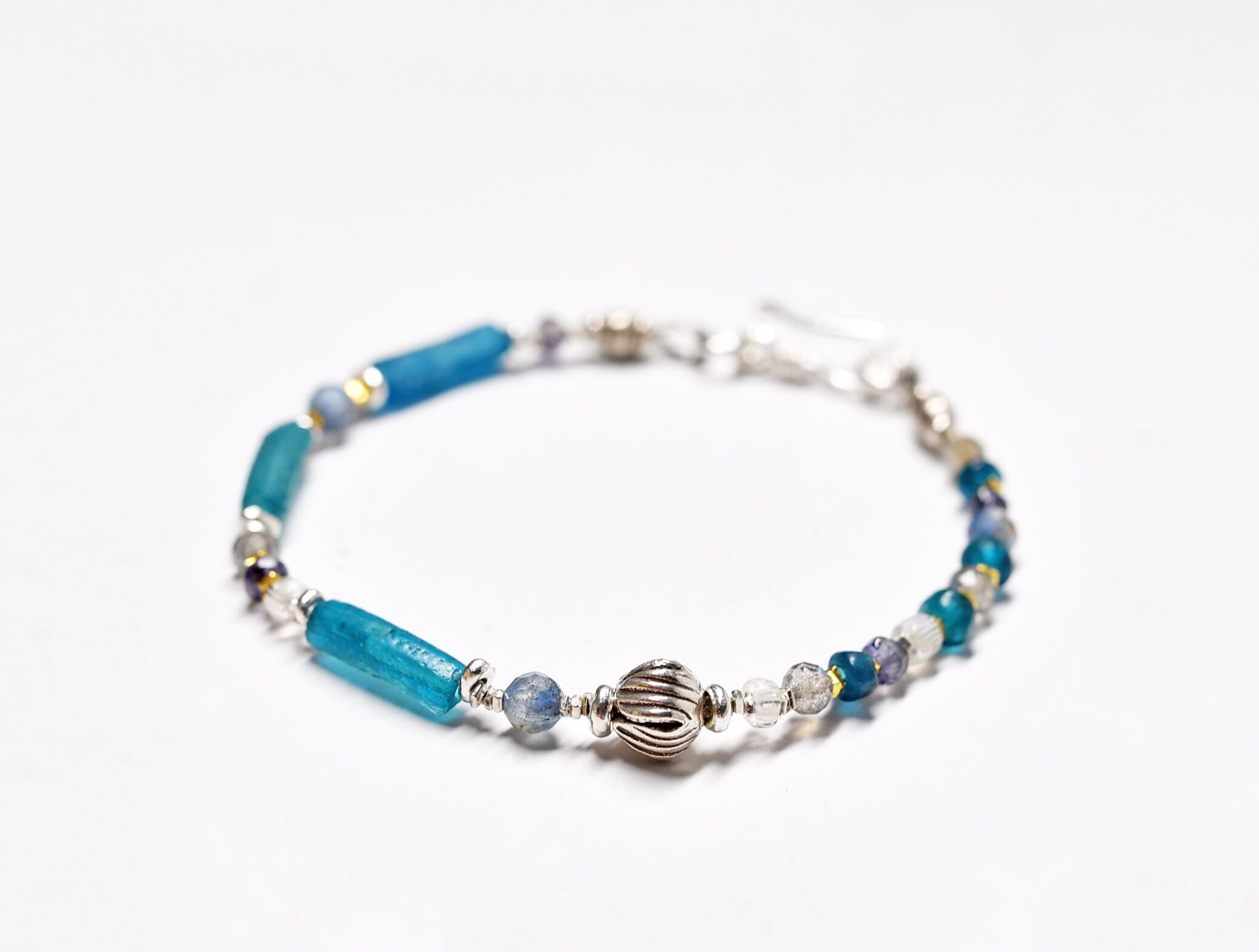 ローマングラスと3種のストーンビーズ、カレンシルバーのブレス