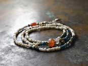 留め金部分のオレンジのビーズは古代カーネリアンです。こちらは東ネパールから届けられたものです。約2000年前のとても古いストーンビーズです。