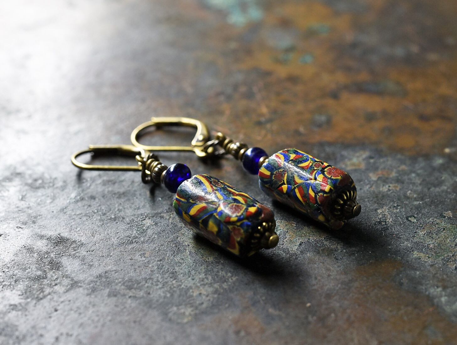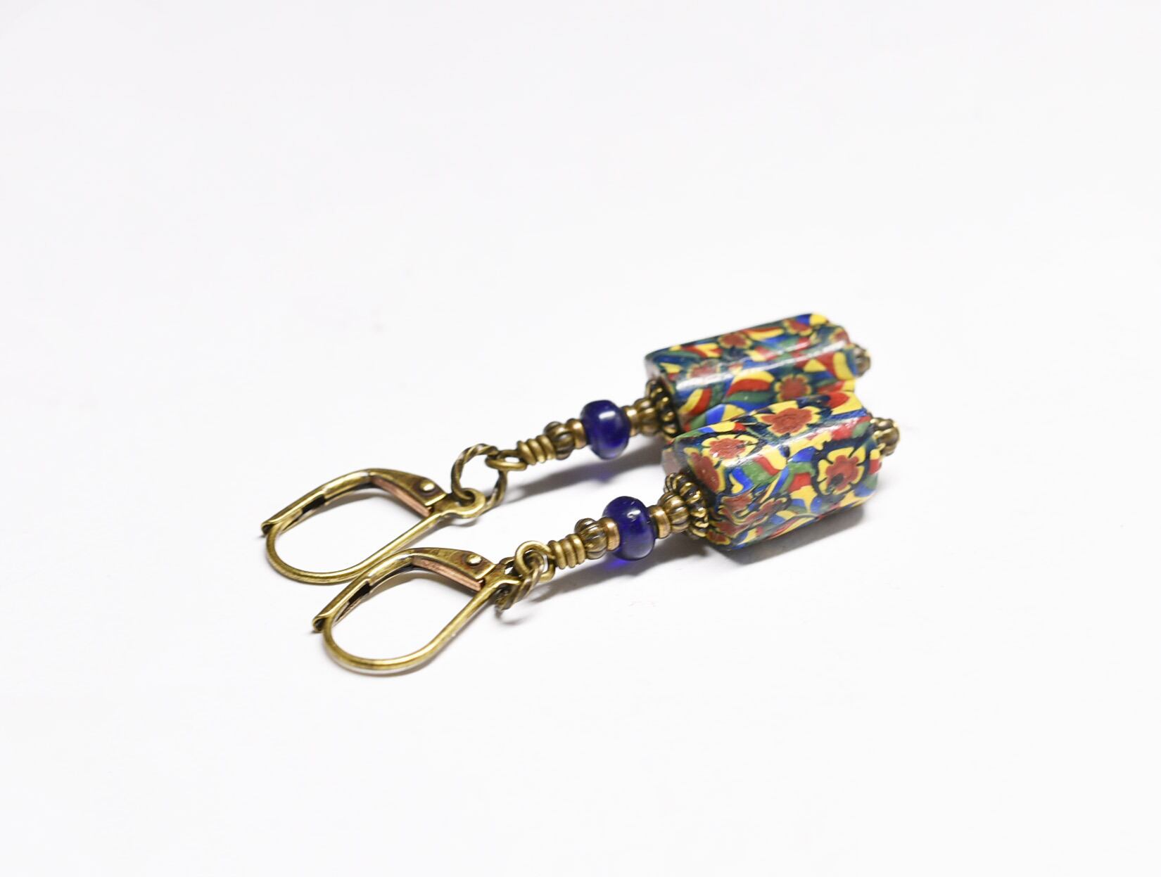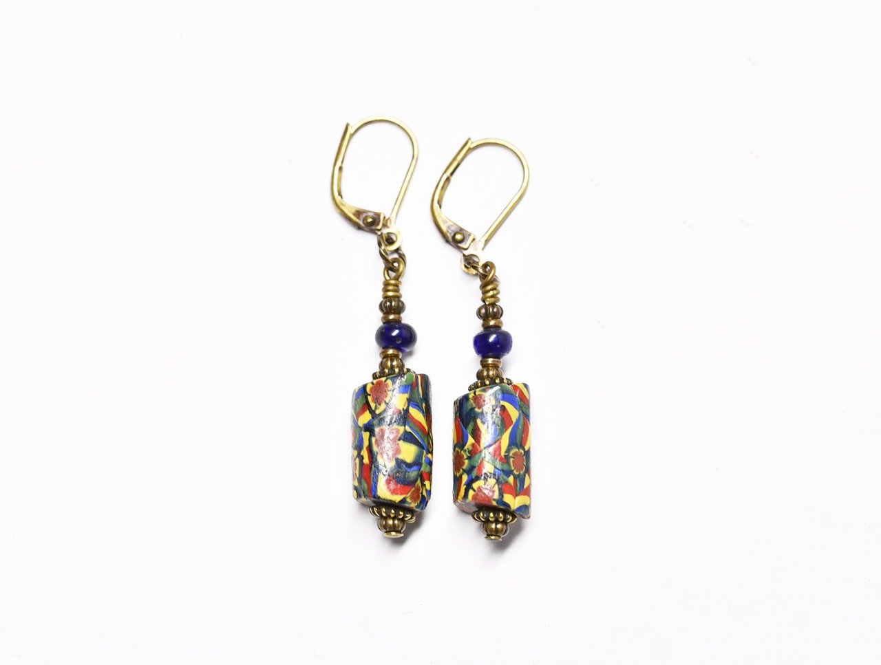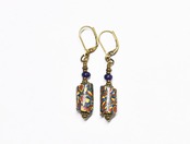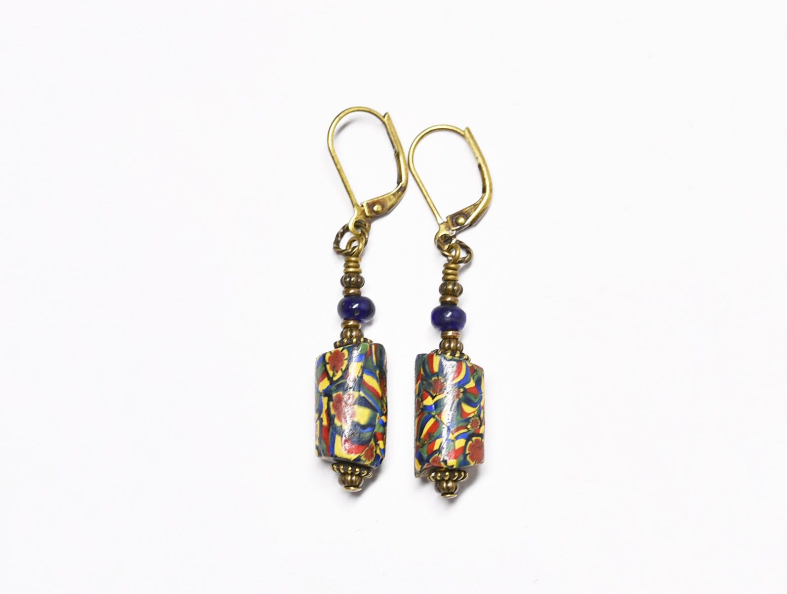 クレイジーミックスベネチアアンティークミルフィオリと瑠璃色ビーズのピアス