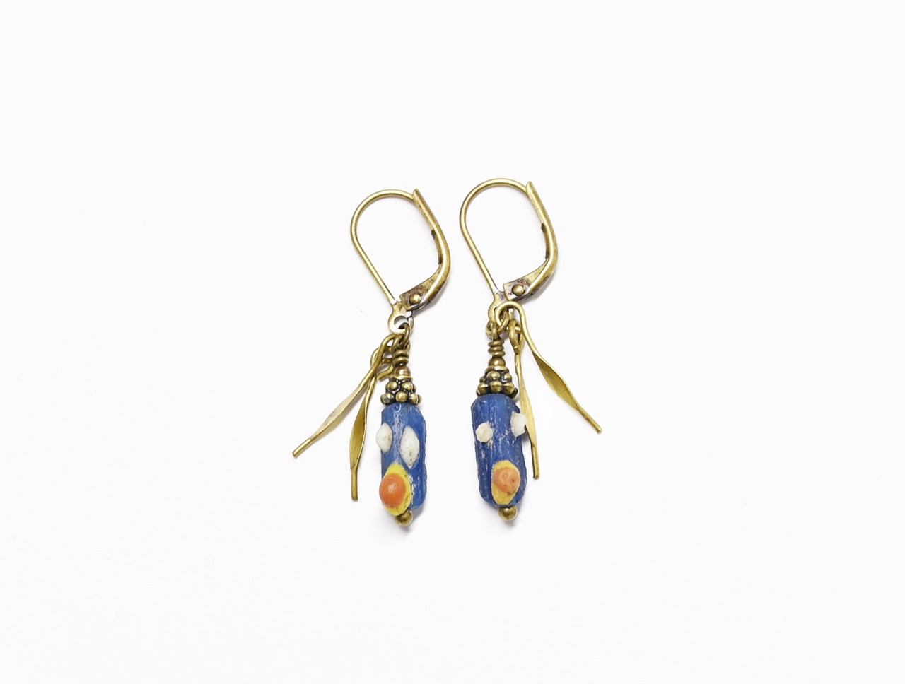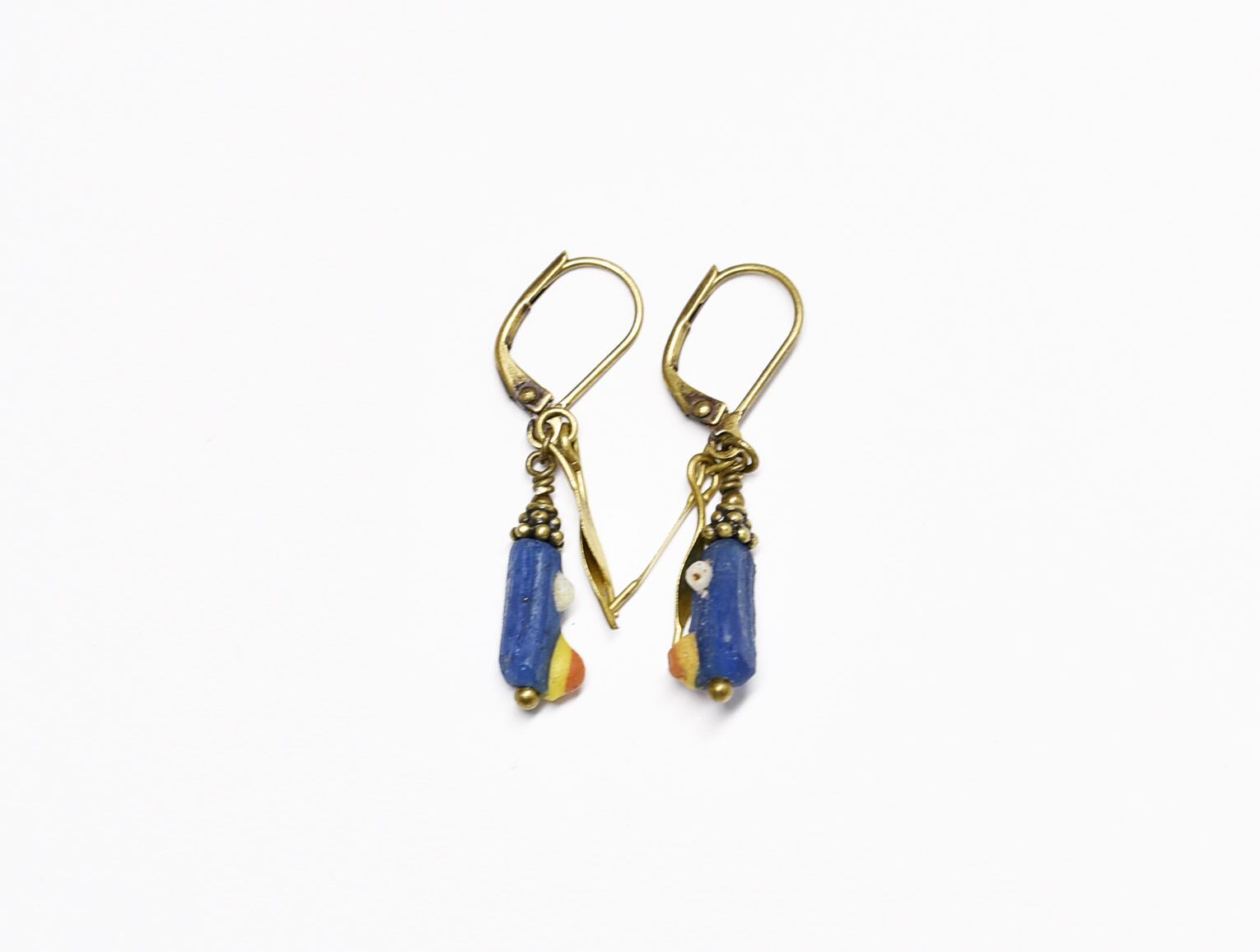 モザイク模様ローマングラスとヒラヒラブラスの小さめなピアス