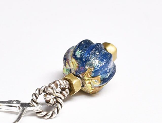 金化&銀化蜜柑型ローマングラスとoldオリッサブラスの片耳ピアス