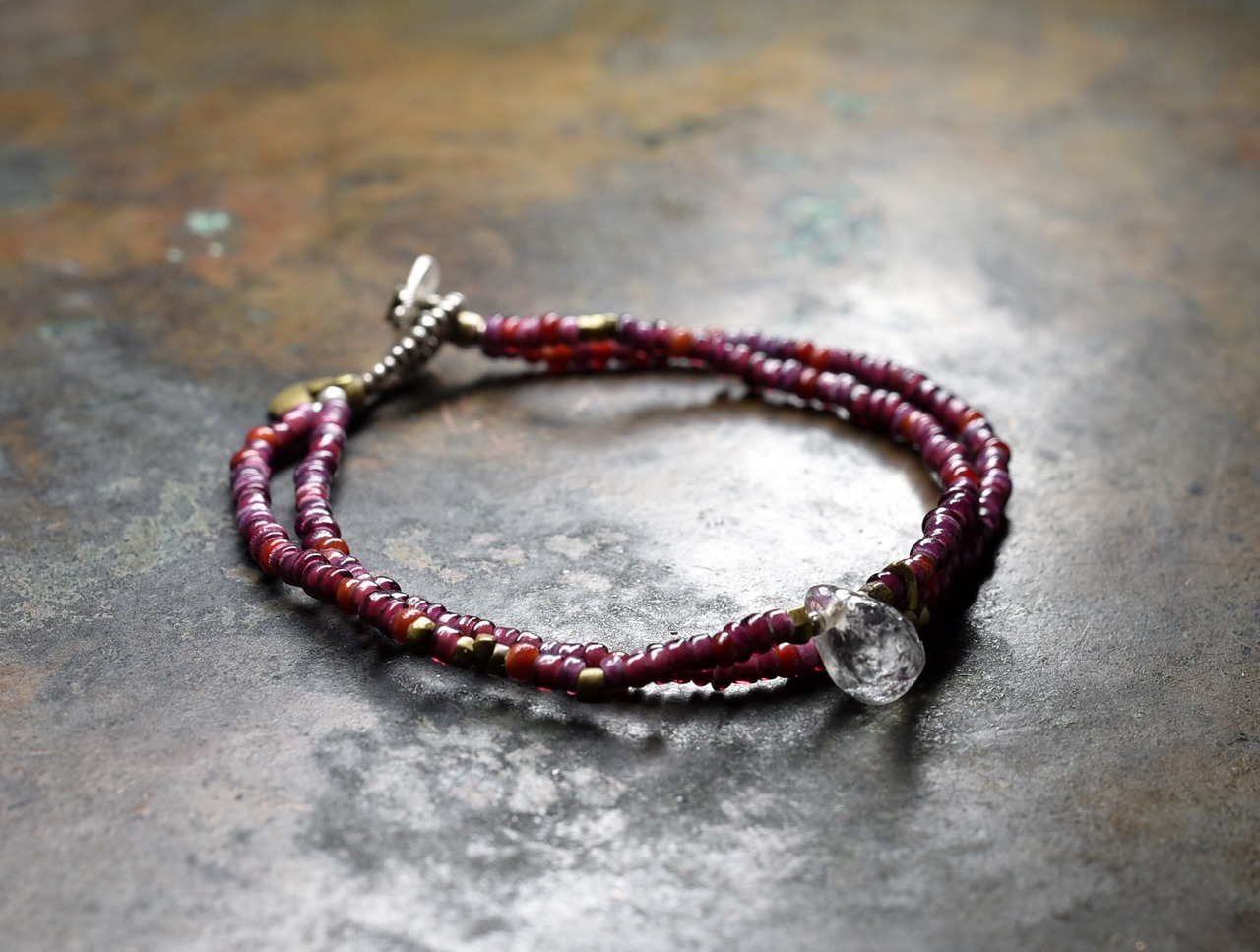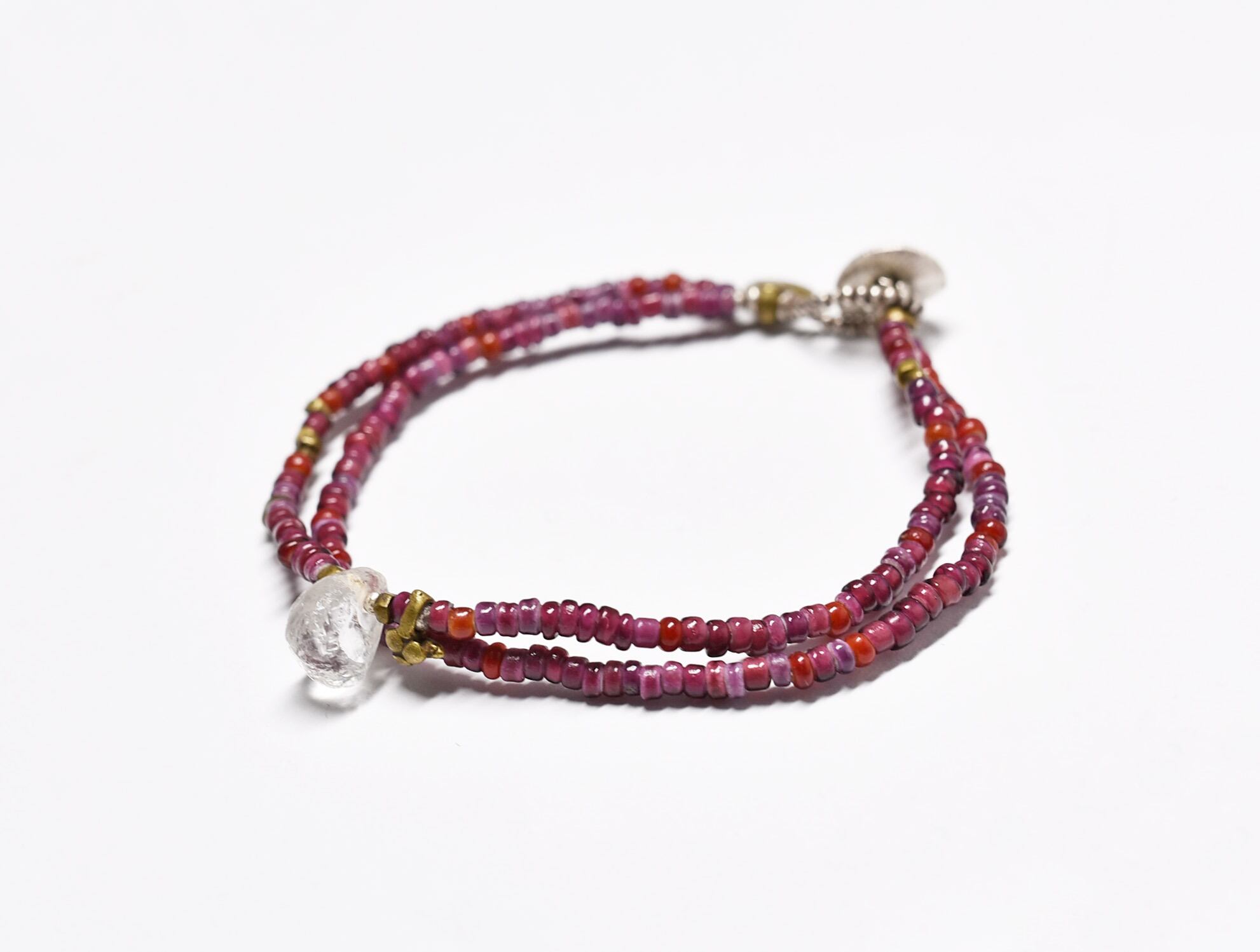 雫型古代水晶と葡萄色ホワイトハーツ、oldオリッサブラスの2連ブレス