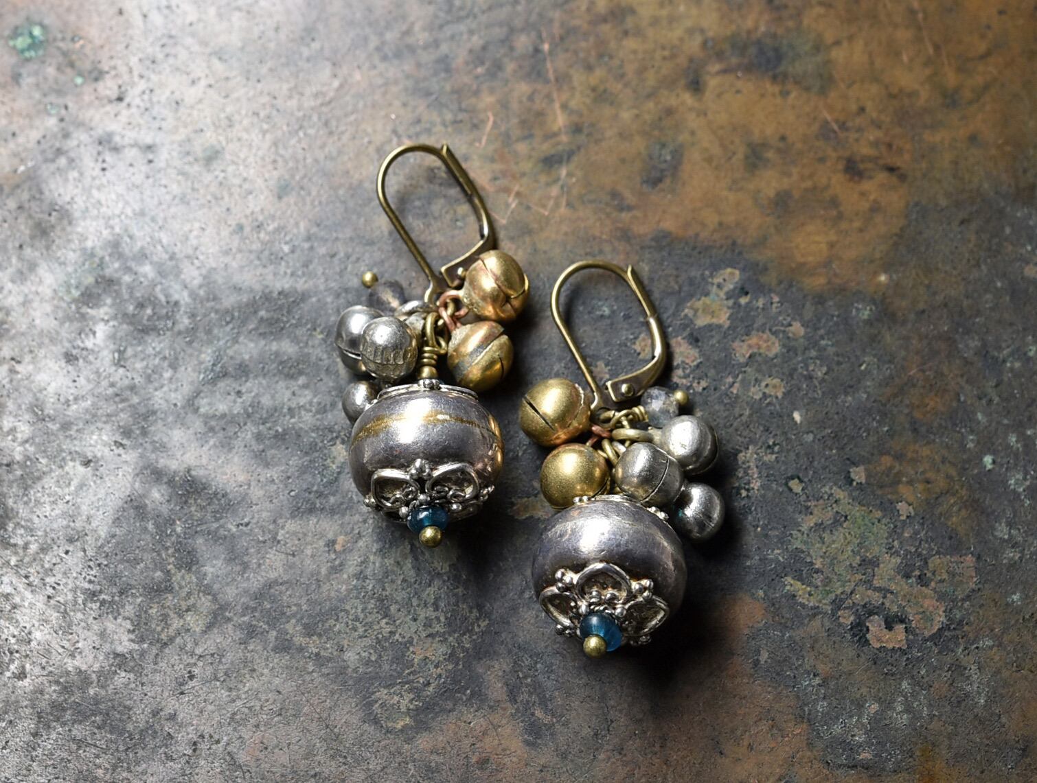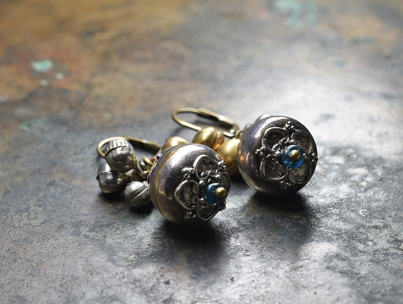 小さなシルバー色の鈴はアフガニスタンのクチ族のパーツです。装飾品などについていたもので、こちらも古いものです。