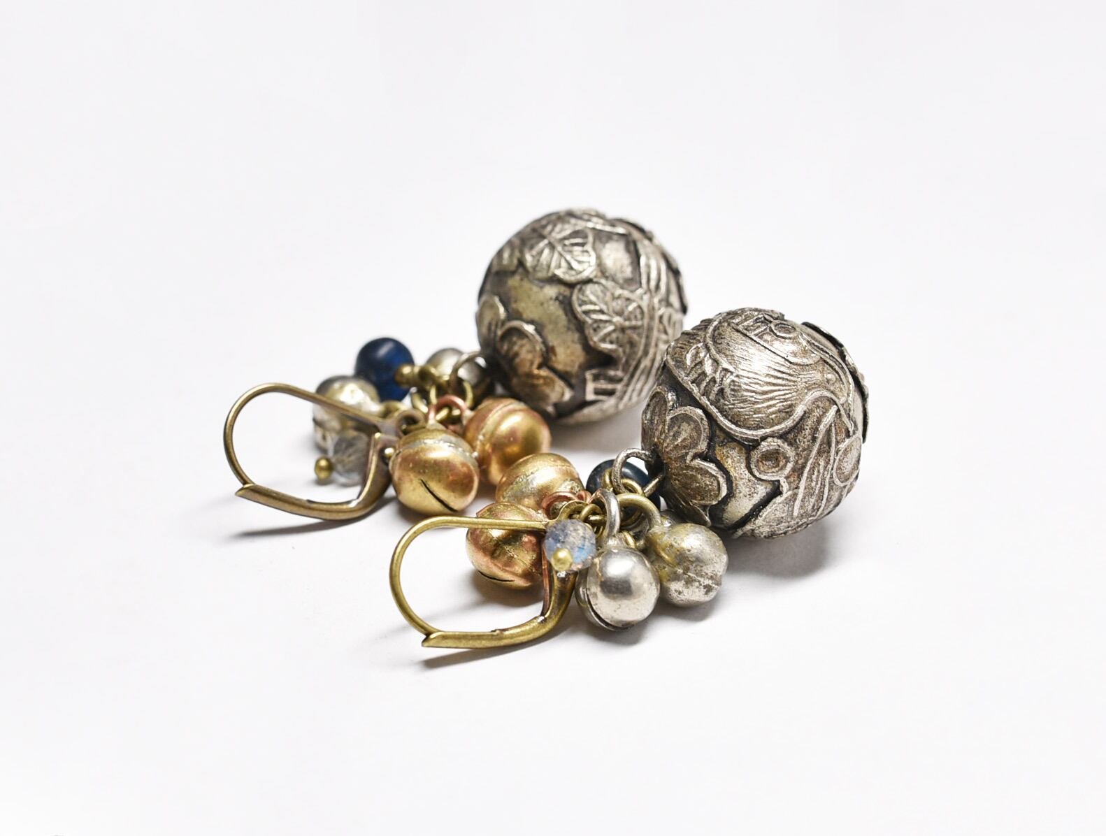 小さなシルバー色の鈴はアフガニスタンのクチ族のパーツです。装飾品などについていたもので、こちらも古いものです。