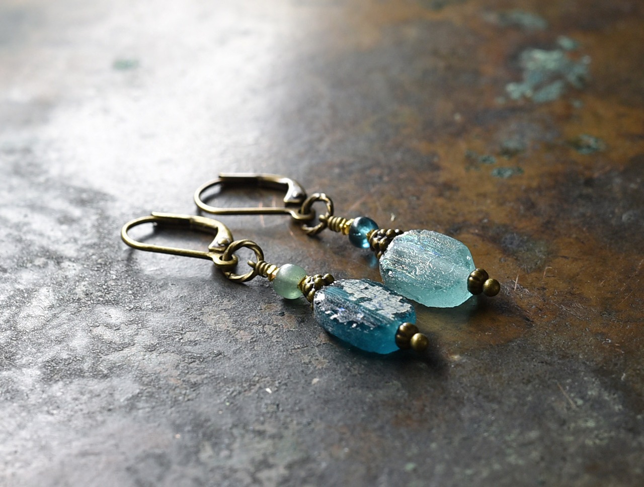 銀化の輝きがなくなっても古代のガラス自体の色を楽しめますので、育てる感覚で身に着けていただければ嬉しいです。