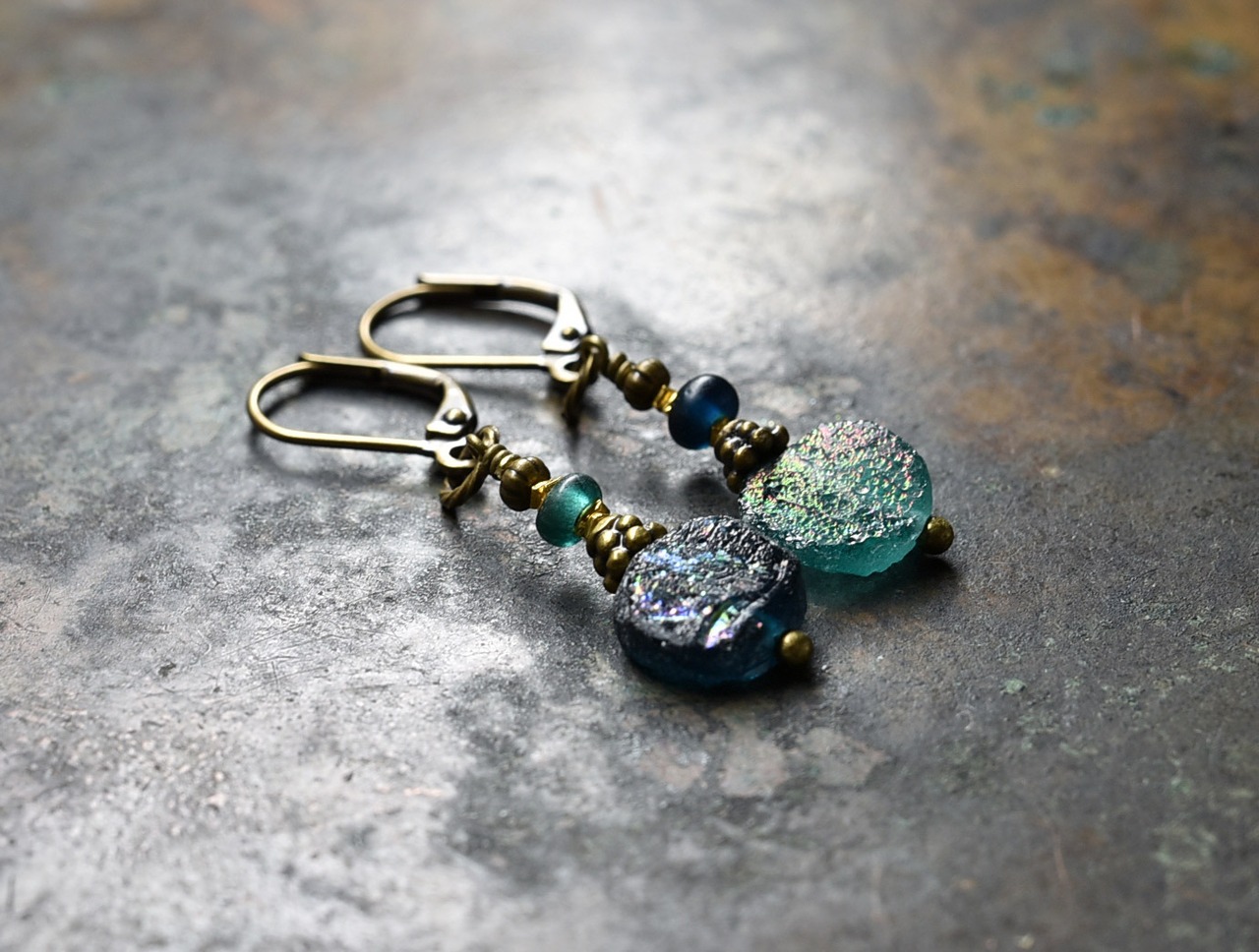銀化の輝きがなくなっても古代のガラス自体の色を楽しめますので、育てる感覚で身に着けていただければ嬉しいです。