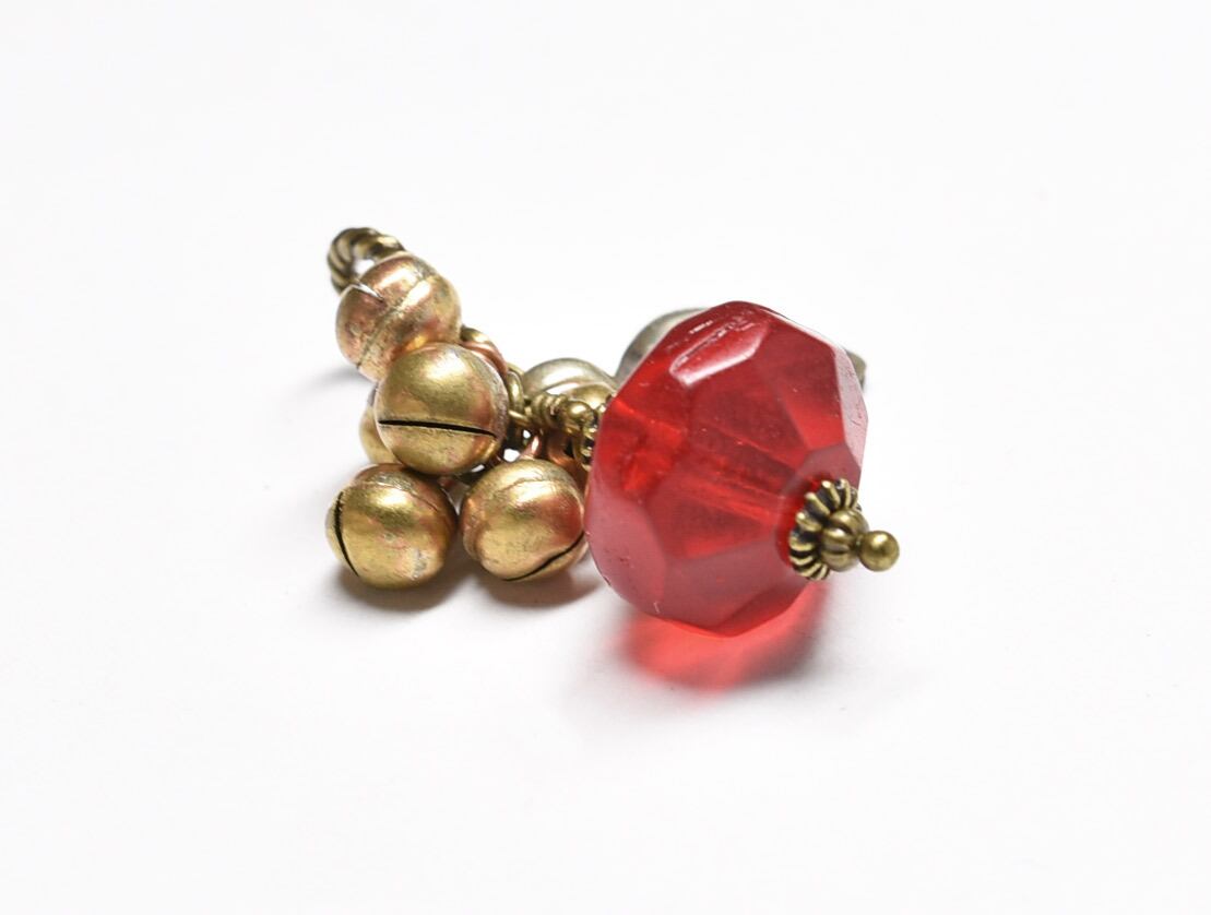 真っ赤算盤型アンティークビーズとたわわな鈴、アフガンパーツのペンダントトップ