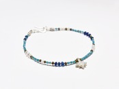 チベットシルバーマーカーとターコイズブルーホワイトハーツ、グーズベリー、ブルーアンティークビーズ、oldオリッサブラスの華奢なアンクレット
