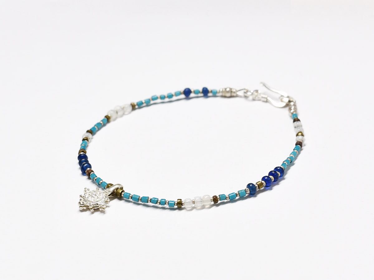 鮮やかなアンティークビーズが楽しめる華奢なアンクレットです。