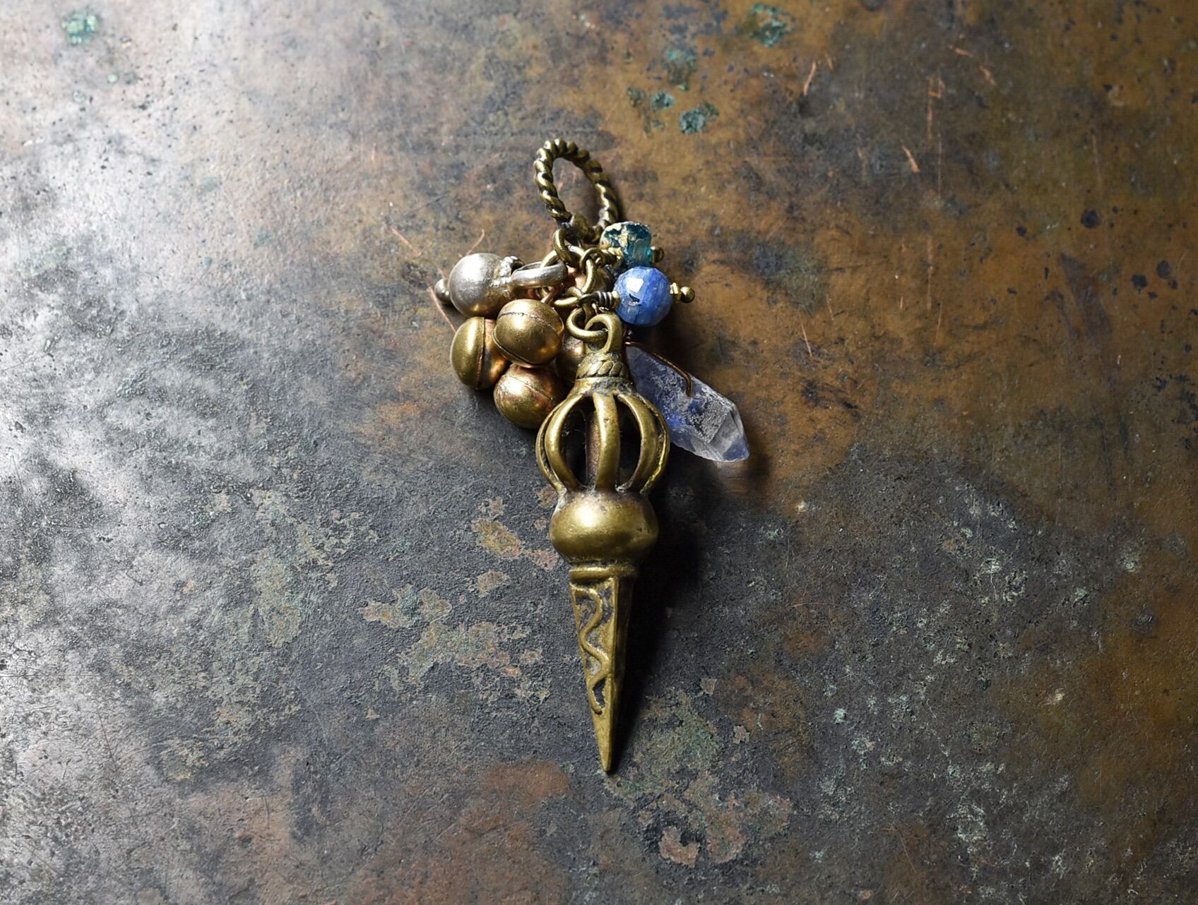 ブラスのトップ部分はチベットから届いたものです。チベット仏教の仏具、「ブルパ・ドルジェ(金剛杵)」だと思われます。