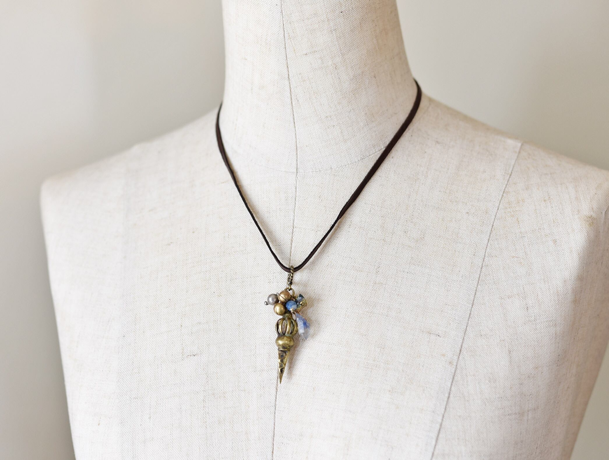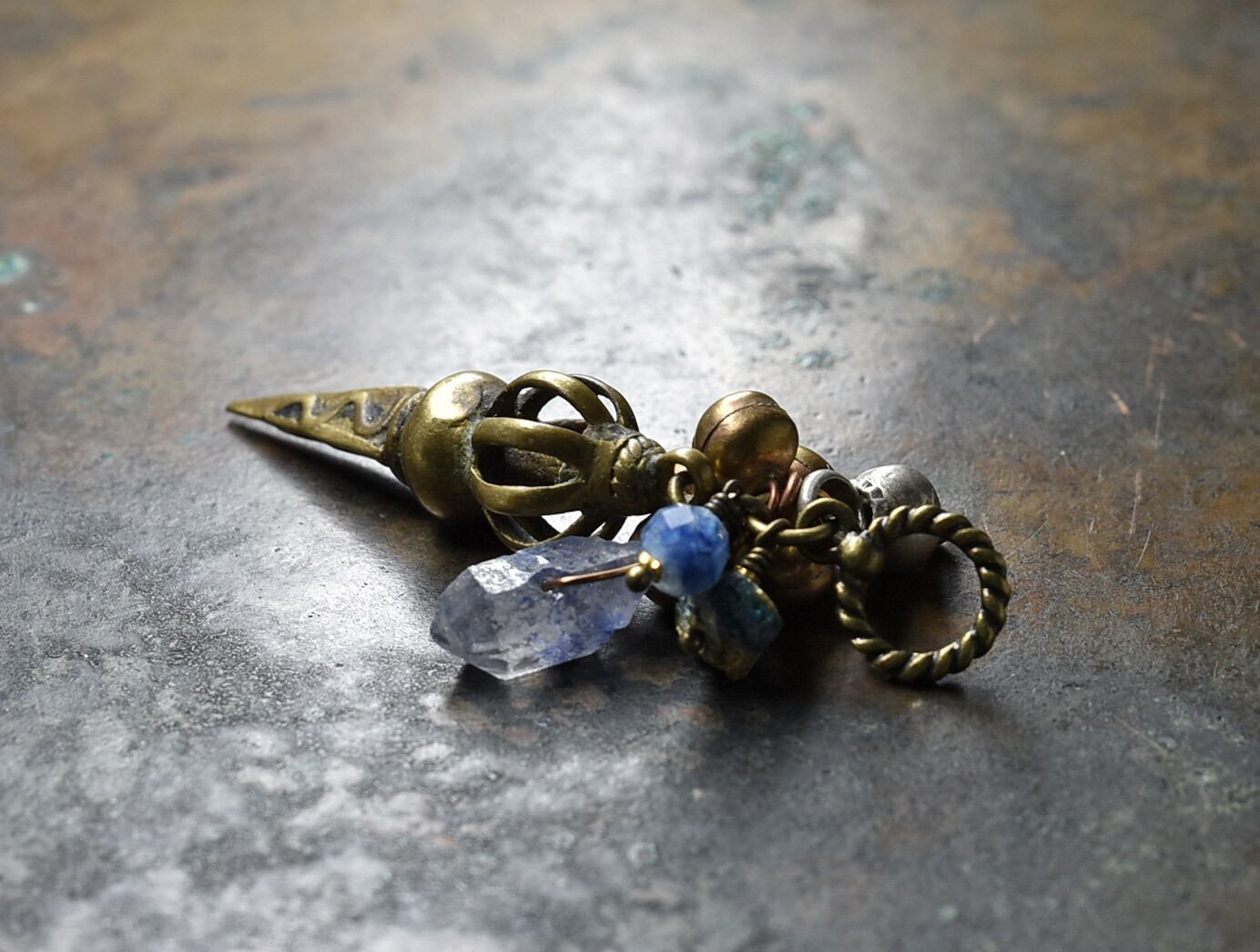 素材:ガラス、デュモルチェライトインクォーツ、カイヤナイト、真鍮、ミックスメタル、oldシルバー