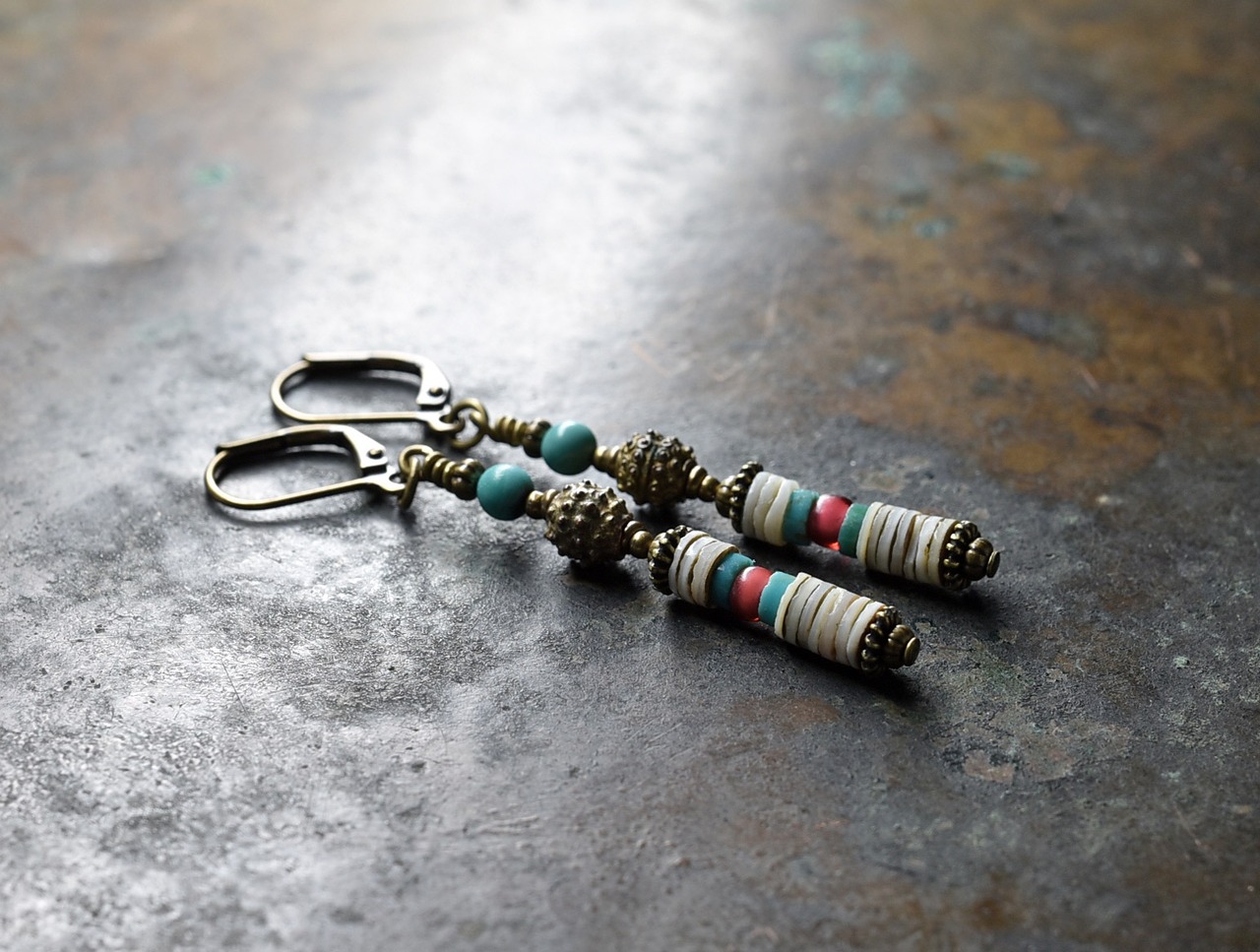 素材:シェルビーズ(貝)、ターコイズ、ガラス、真鍮