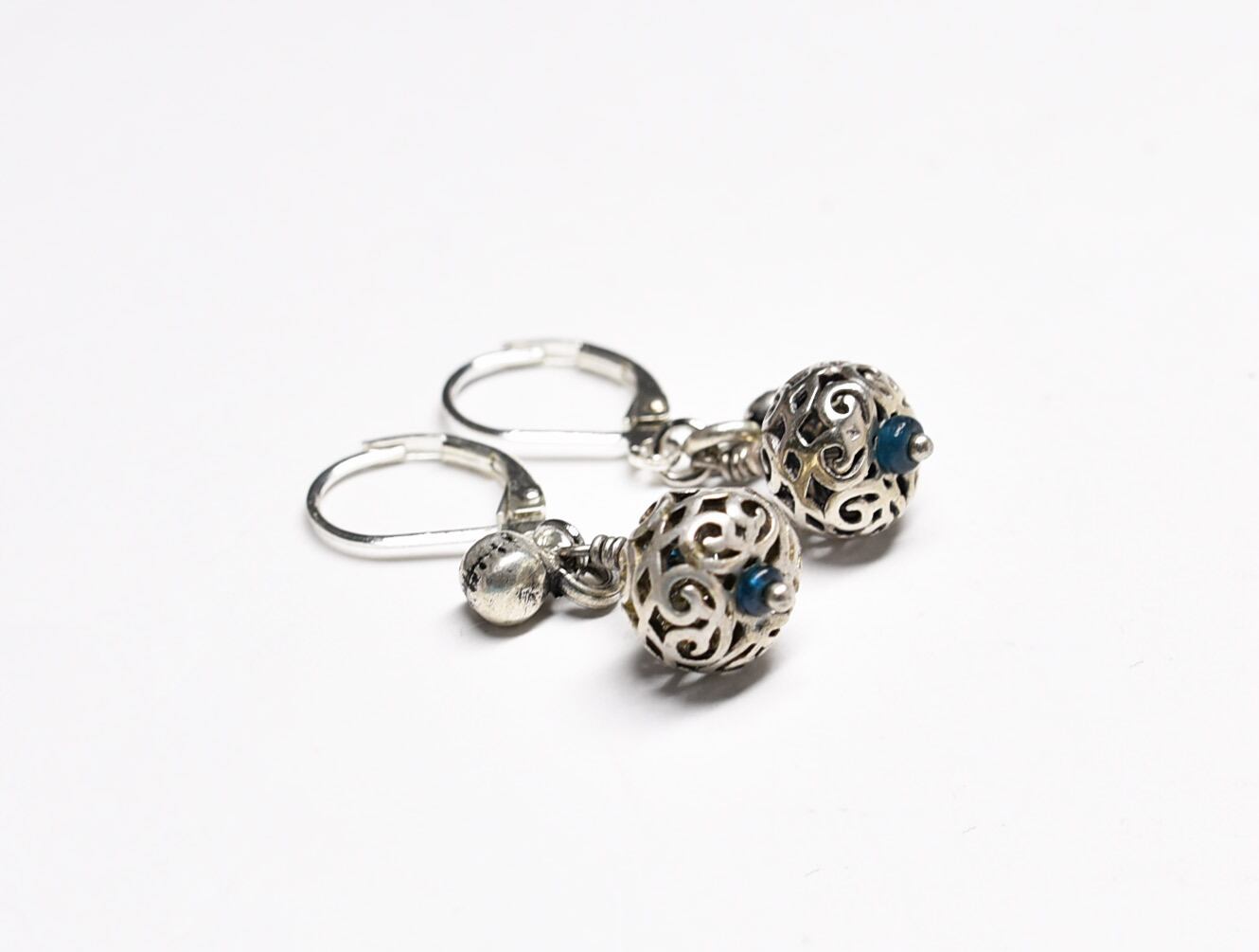 チベット繊細細工のメタルビーズと小さな鈴のピアス