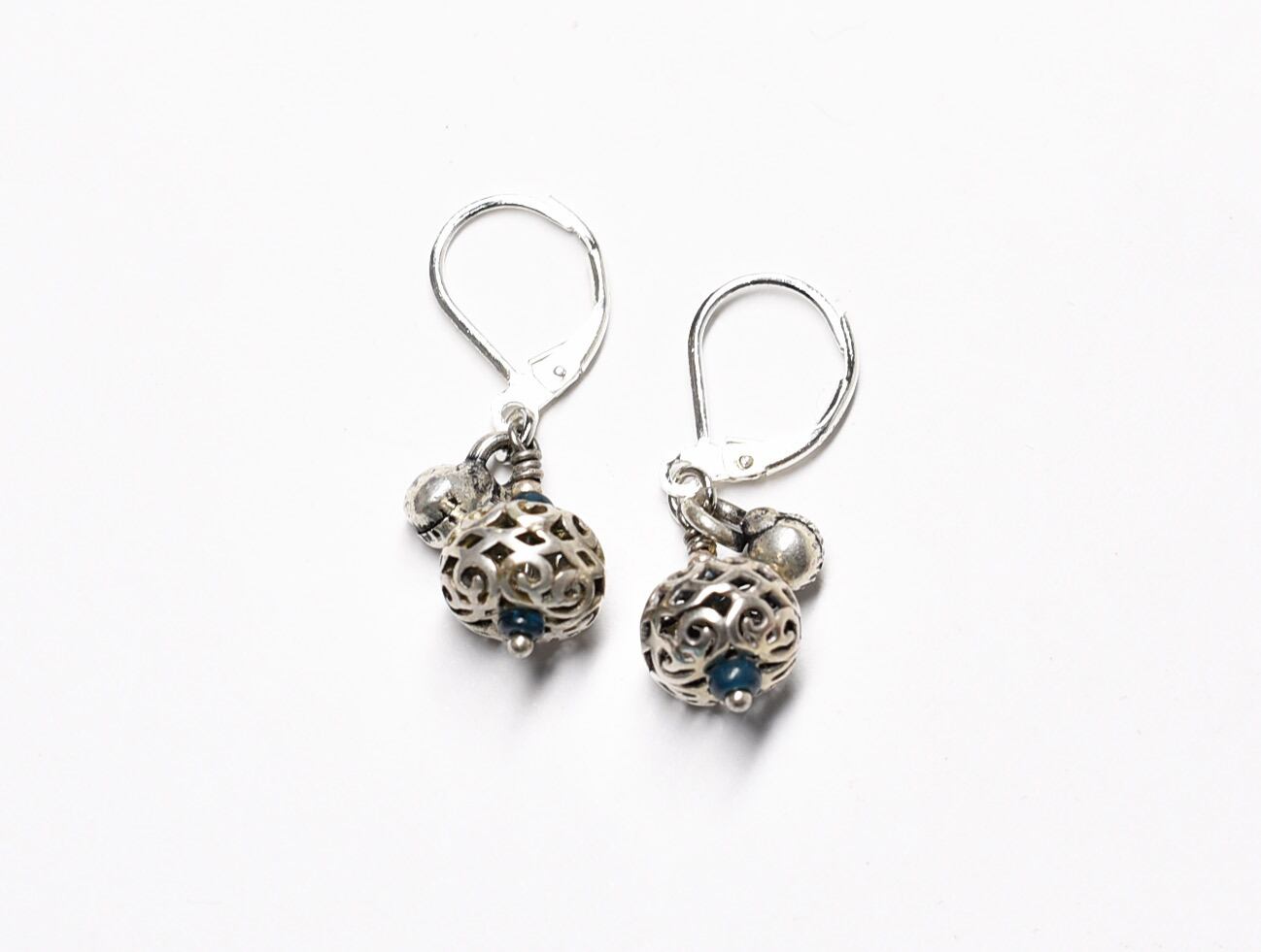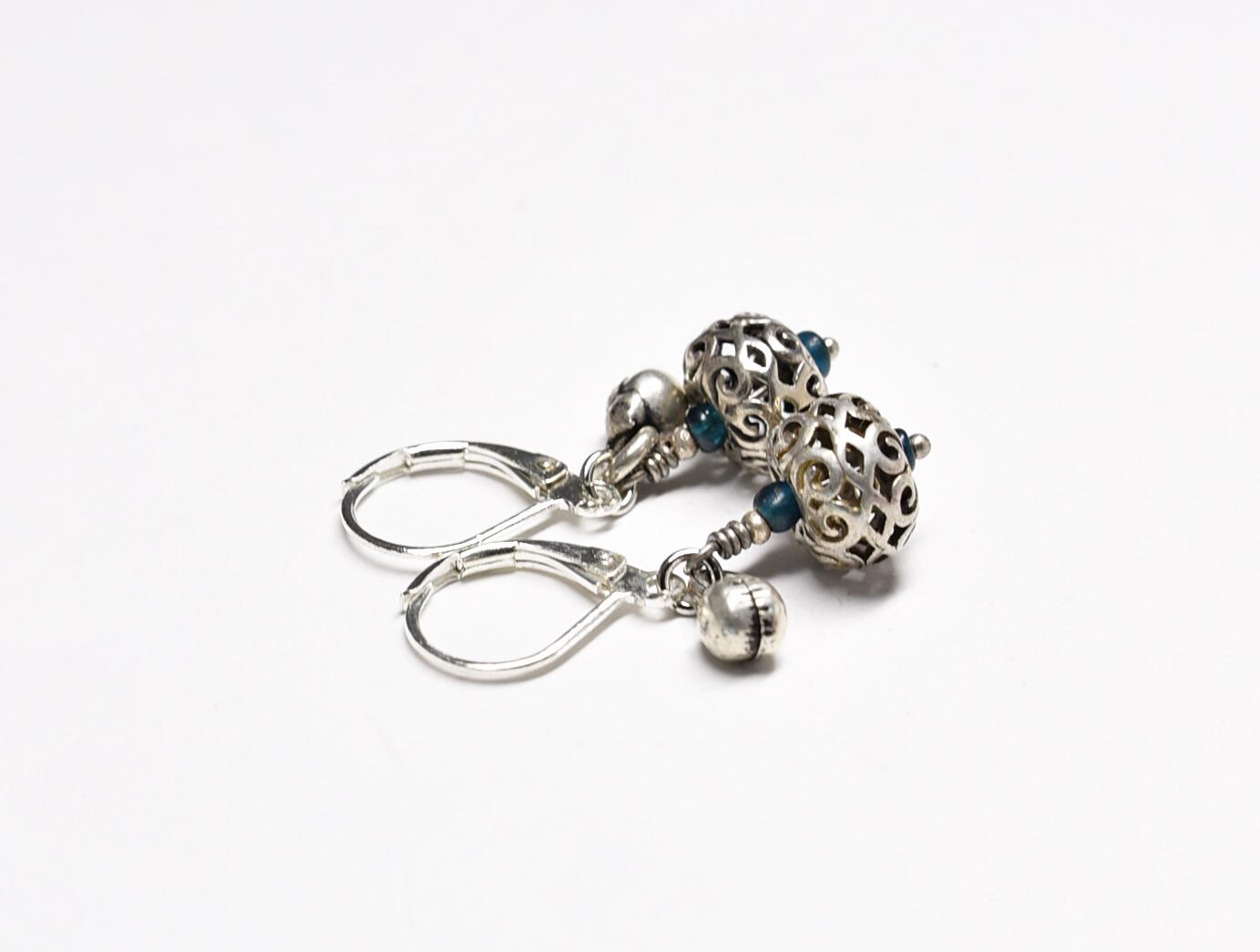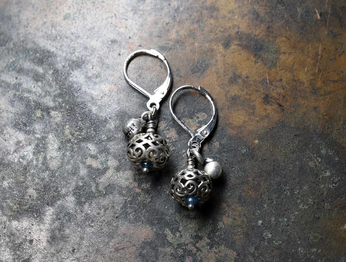 チベットのメタルビーズと、小さな鈴を繋いだピアスです。
