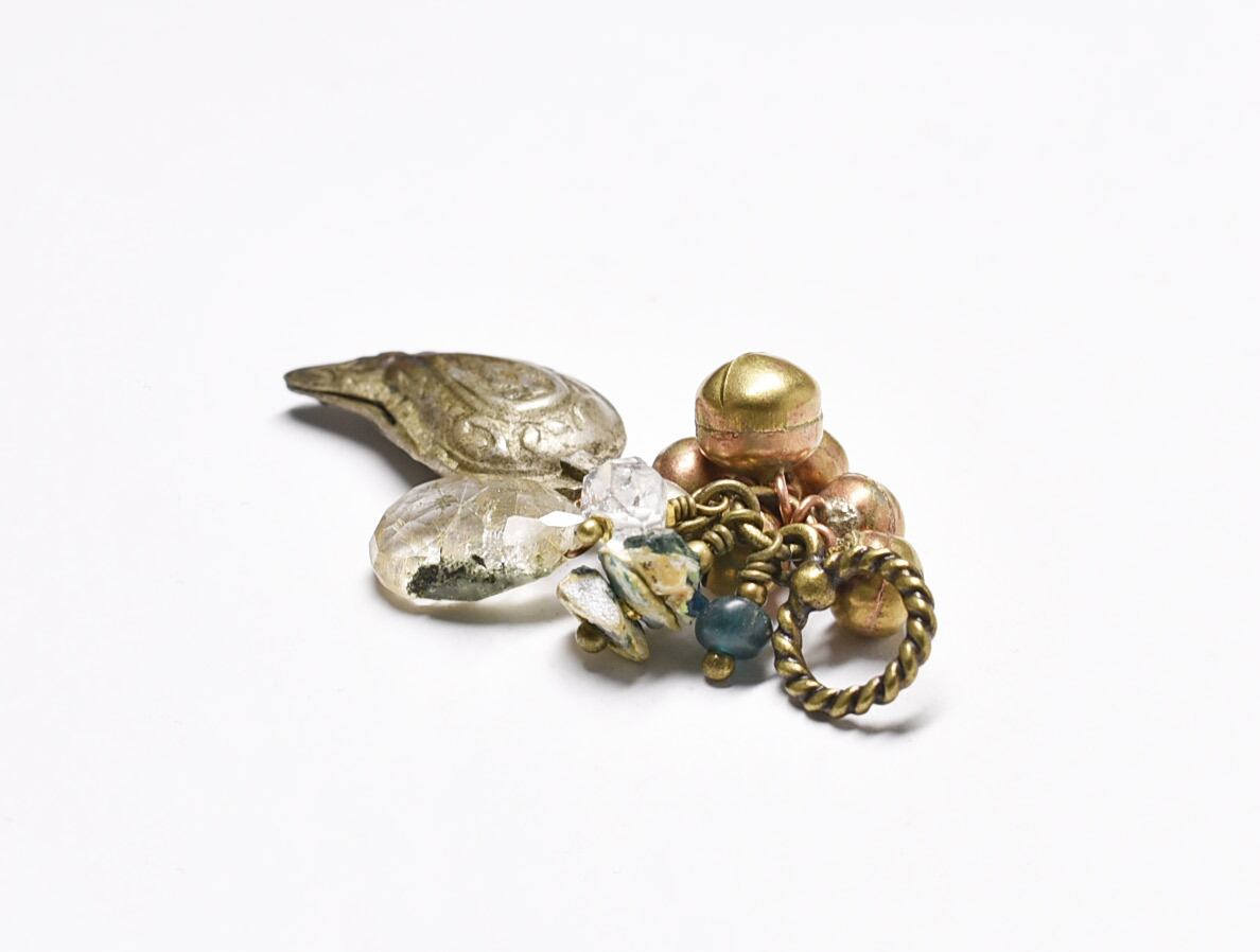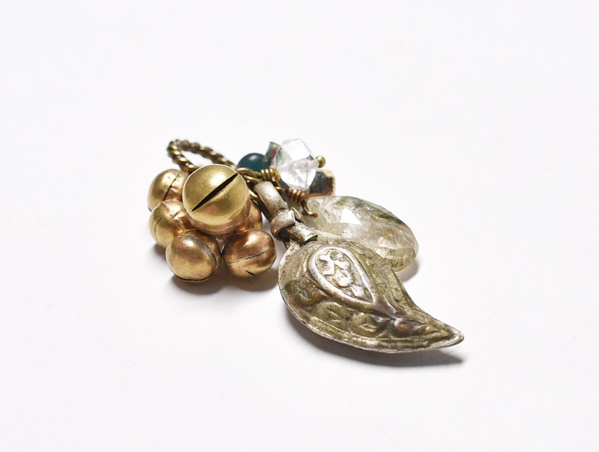 素材:oldシルバー、真鍮、ガーデンルチルクォーツ、ハーキマーダイヤモンド、ガラス