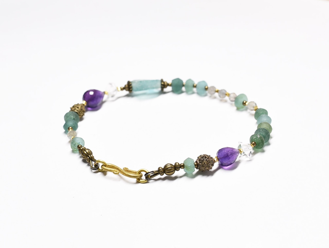 古代ガラスの味わいと天然石の美しさが楽しめるブレスです。