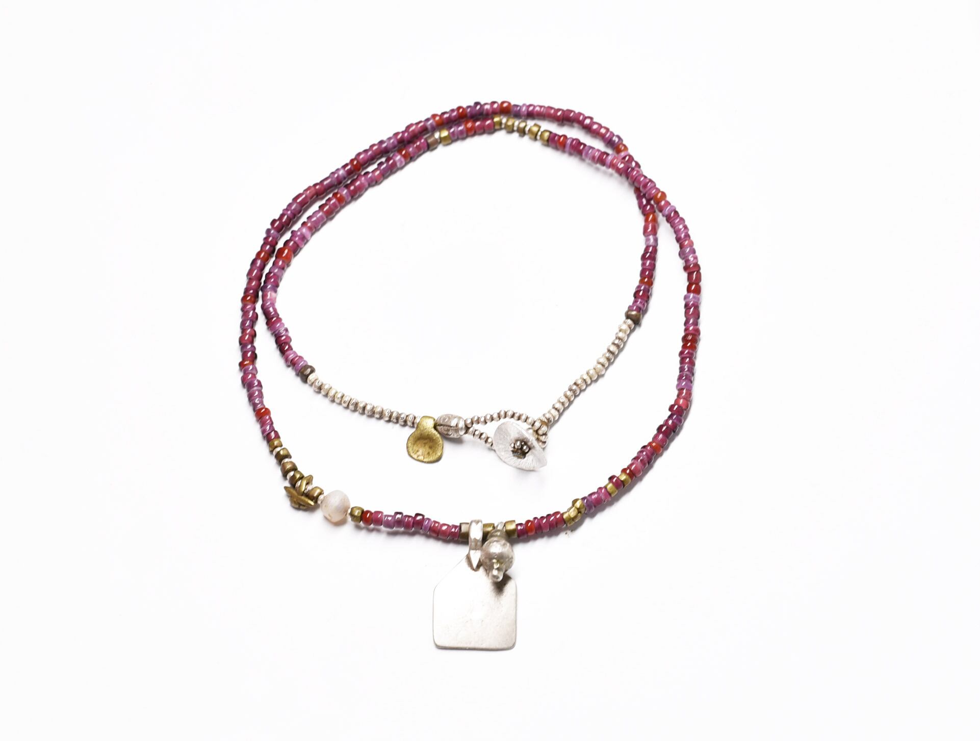 トップの横の小さなチャームはアフガニスタンから届いた古いシルバーです。民族衣装や装飾品に使われていたものです。