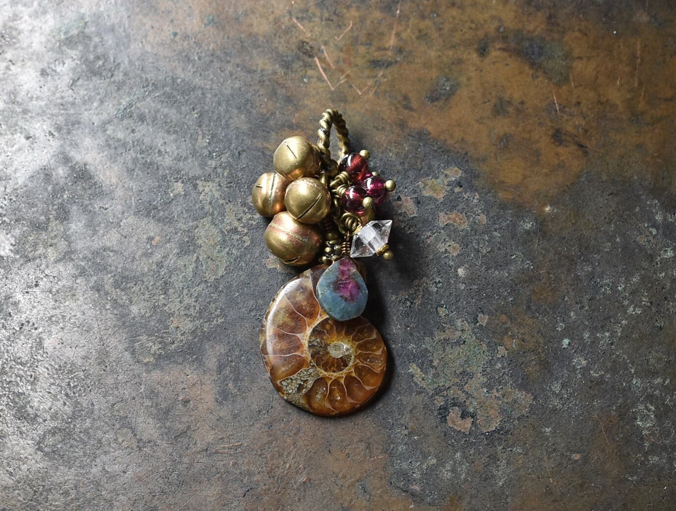 素材::アンモナイト、真鍮、ルビーインゾイサイト、ガーネット、ハーキマーダイヤモンド
